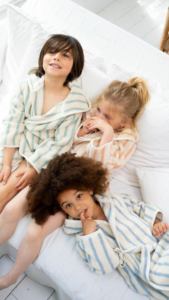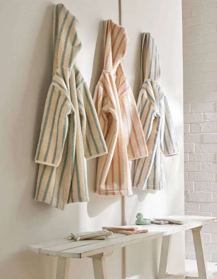 Plush Kids Hooded Bathrobe Soft Hooded Bath Towel Yarn Dyed Organic Stripe Children