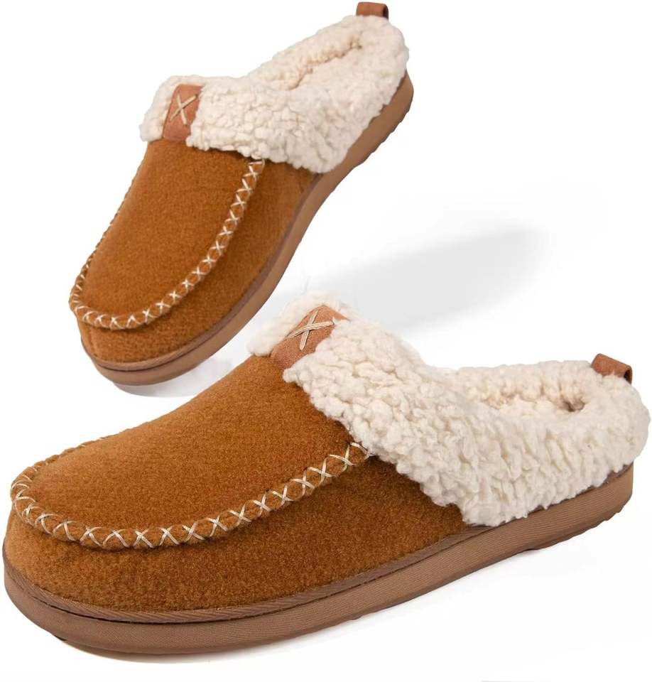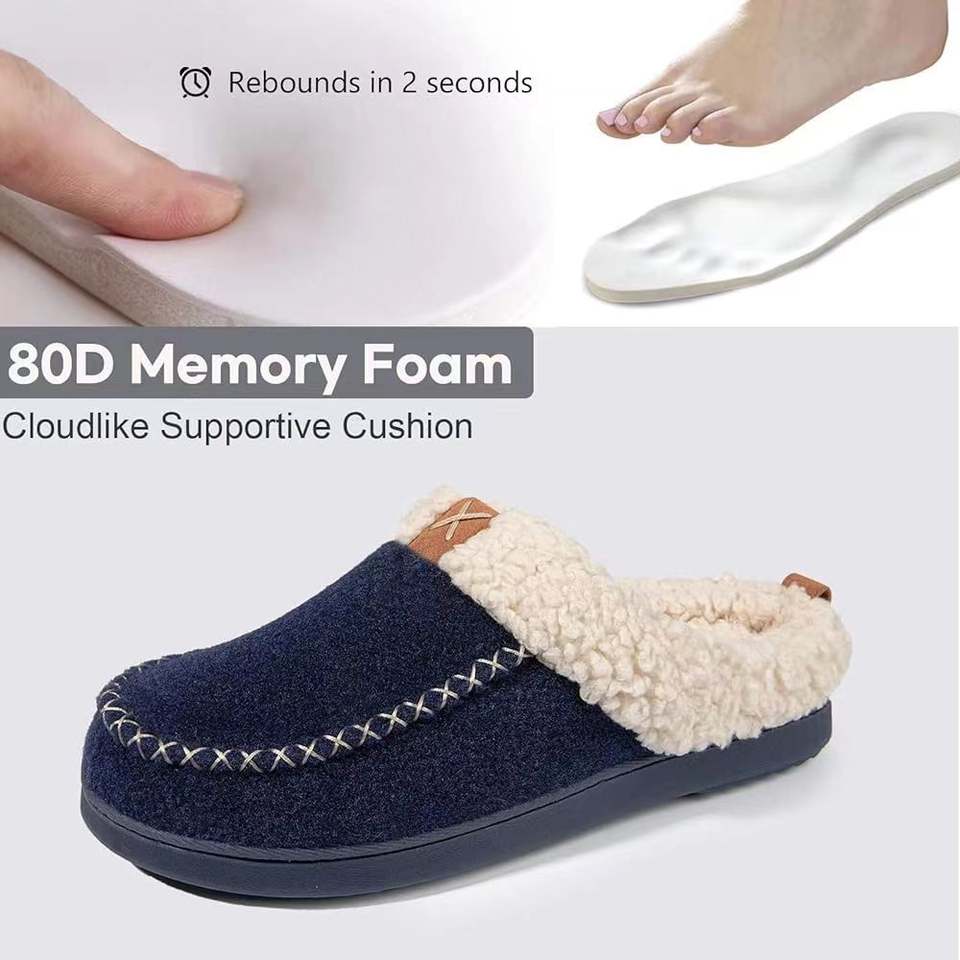 Chaussons en feutre de laine pelucheux à tête ronde et à bout épais avec mousse à mémoire de forme pour hommes Homitem Chaussons pour hommes