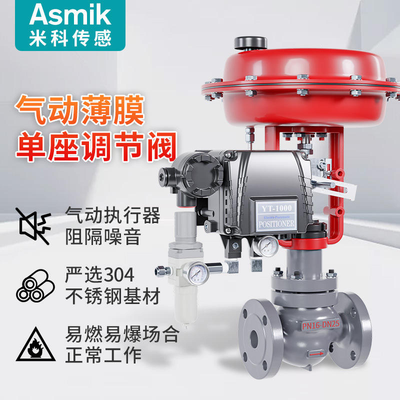 Vanne de régulation à diaphragme pneumatique PN16 DN25 avec positionneur et régulateur pour la régulation de pression