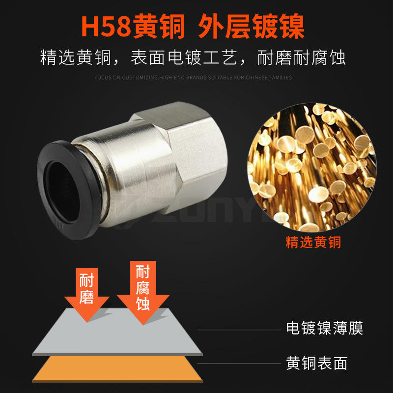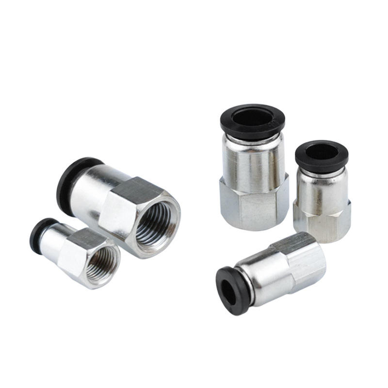 Raccord rapide pour tuyau pneumatique PCF6 01 8 02 10 03 12 04, filetage interne, traversant, en cuivre nickelé, plastique