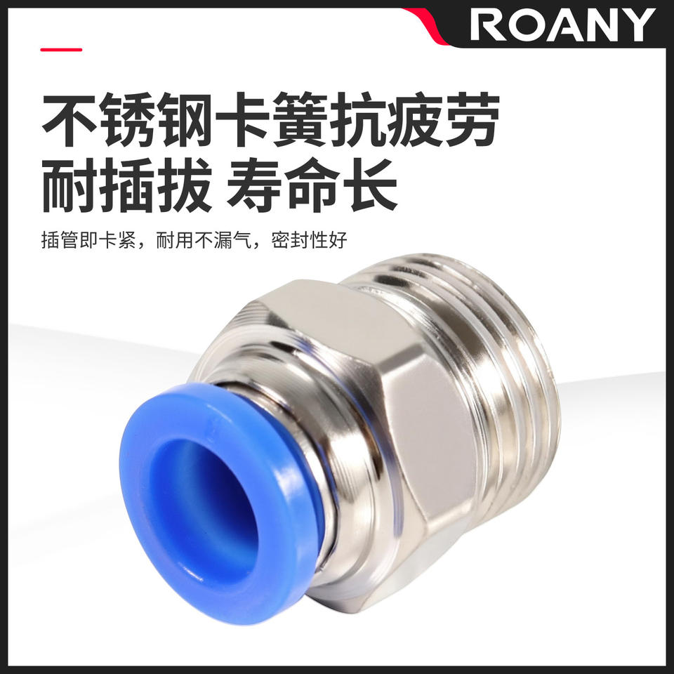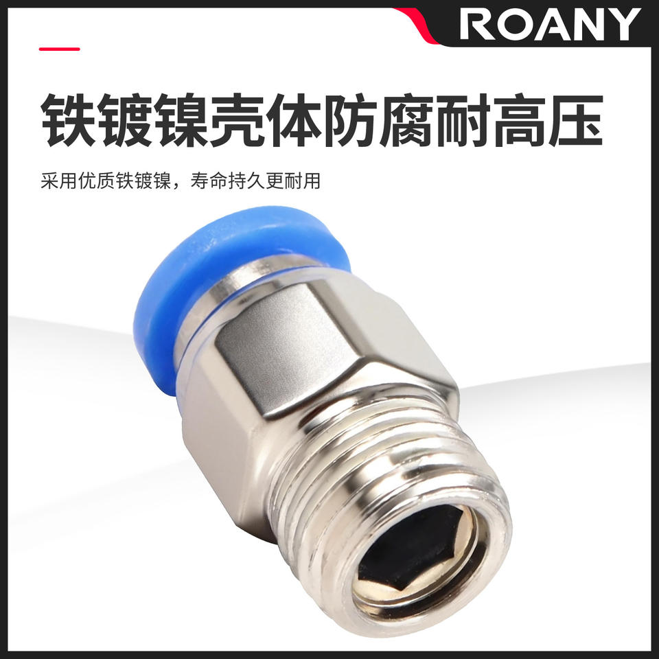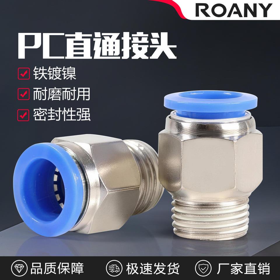 Connecteur rapide pneumatique PC8 02, fileté droit, en fer nickelé, filetage externe, pression 1Mpa, composants pneumatiques
