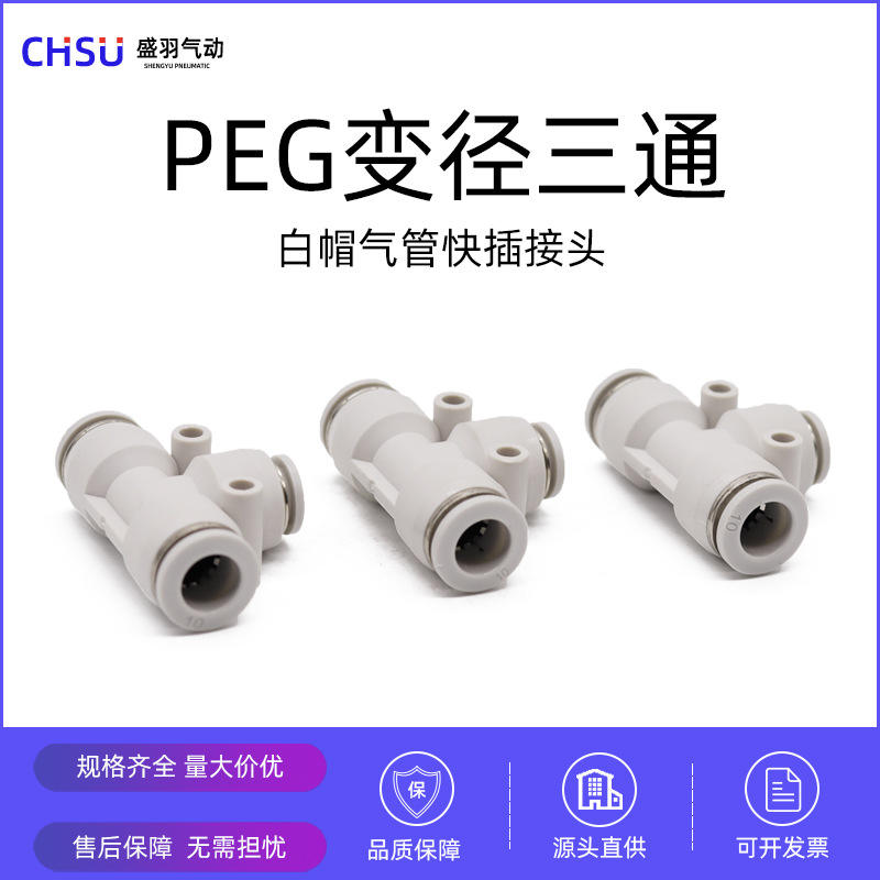 Raccord rapide pneumatique PEG10-8 en T droit en laiton, réducteur en T, raccord rapide pour tuyau d'air de 8 mm avec matériau plastique