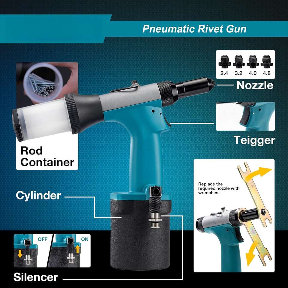 Kit de pistolet à riveter pneumatique Outil de riveteuse hydraulique à air robuste avec 200 rivets pour réparation automobile