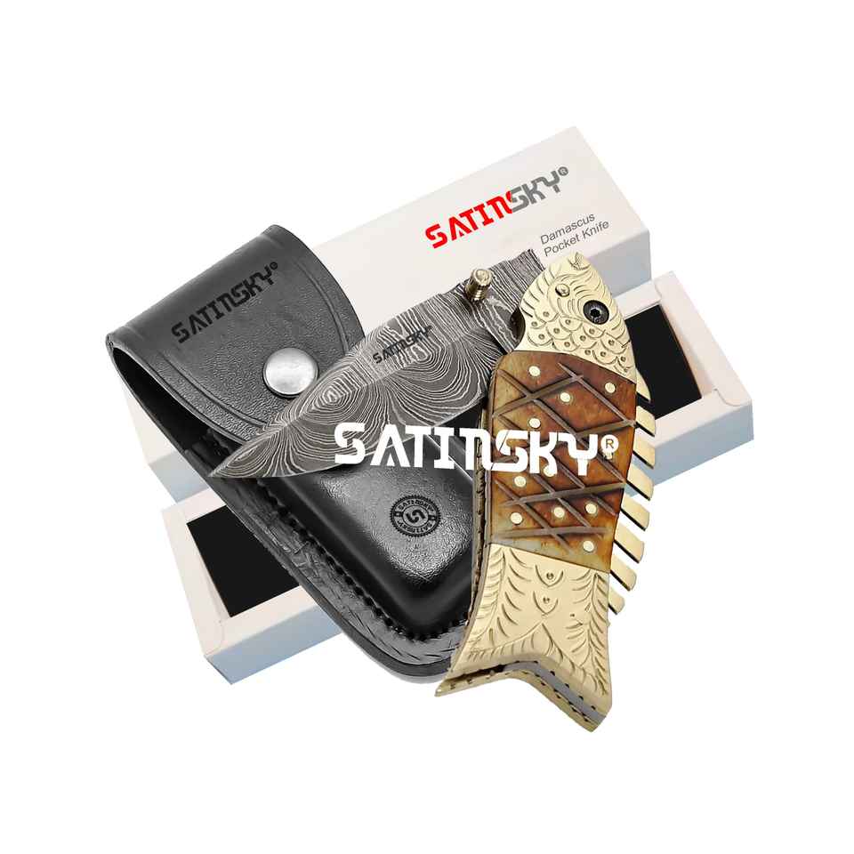 Product Name:Pocket Knife 10" Damascus Steel with Ram Handle and Brass Bolsters