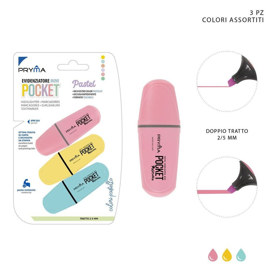 Pocket Mini Highlighter Set 2/5mm 3pcs Couleurs Pastel pour Bureau