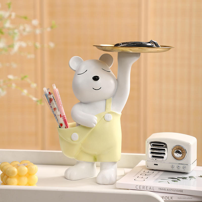 Pocket Bear Epoxy Resin Artistic Folk Art Figurine Entrance Key Storage Ornament Cream Wind Living Room Tray Rack Move New Home