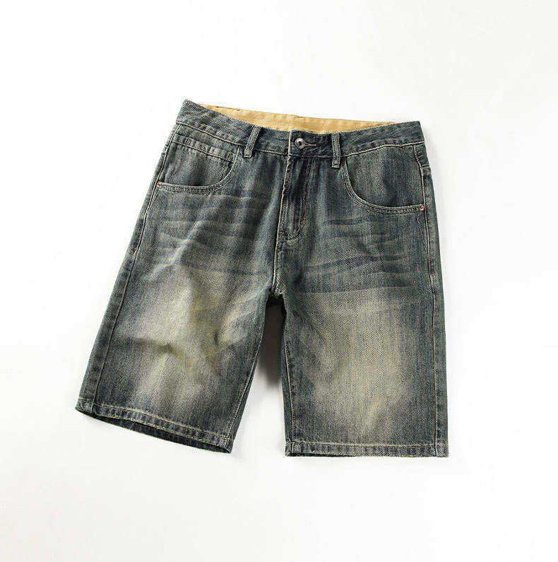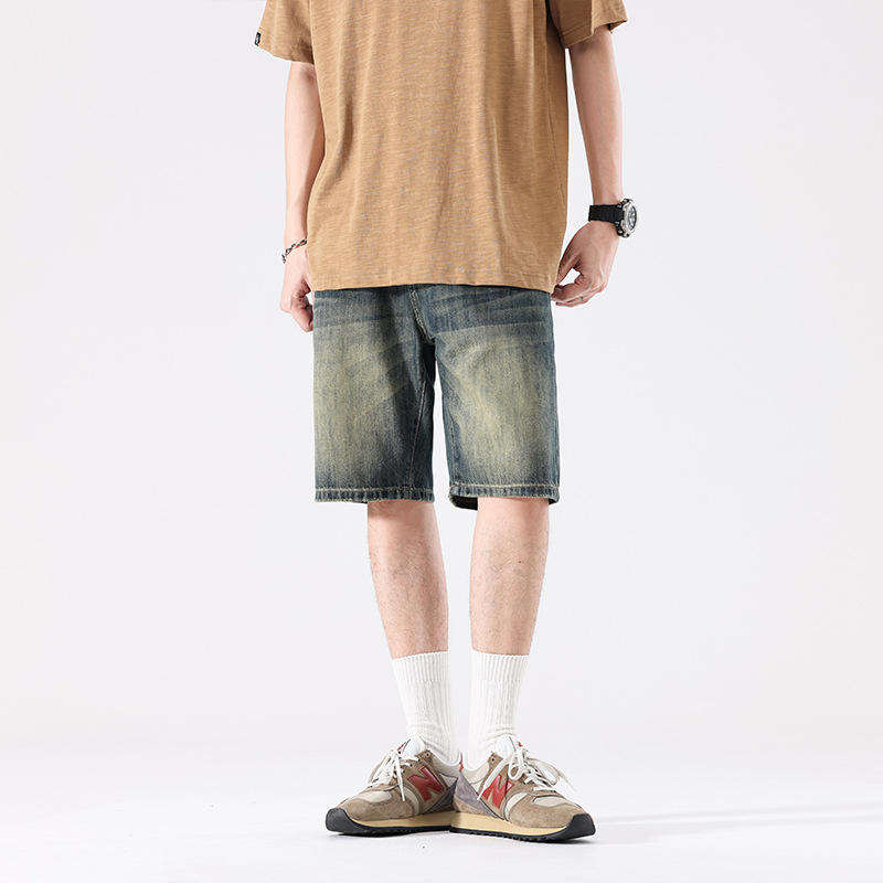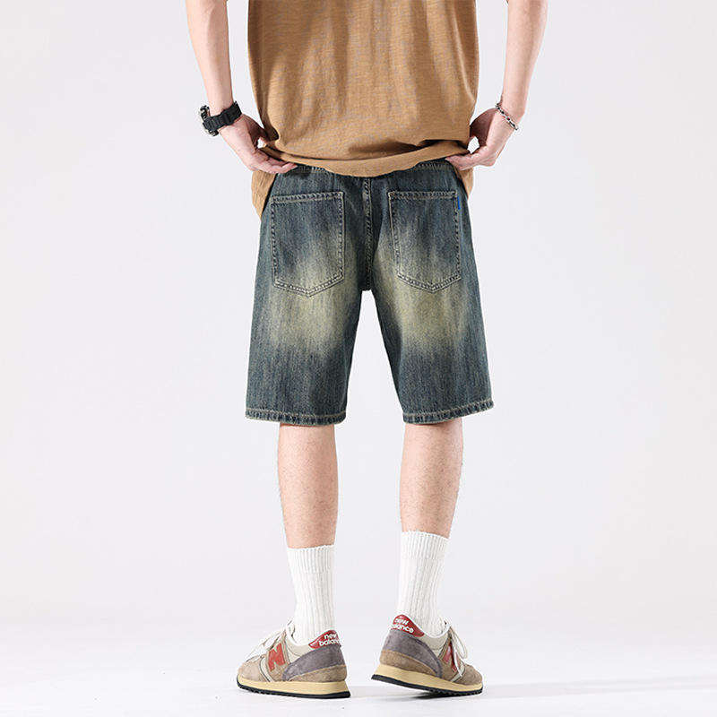 Shorts en jean premium pour homme 2025 avec poches, motif uni, écologiques, taille mi-haute, style hip-hop, teinture unie, décontractés
