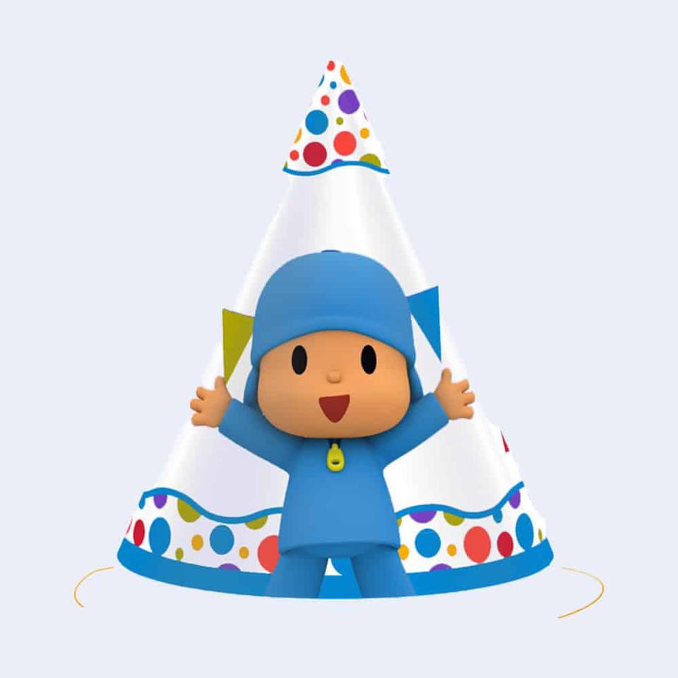 Chapeaux de fête Pocoyo, 6 pièces, 2 par sac, motif à pois colorés, décorations de fête d'anniversaire pour enfants
