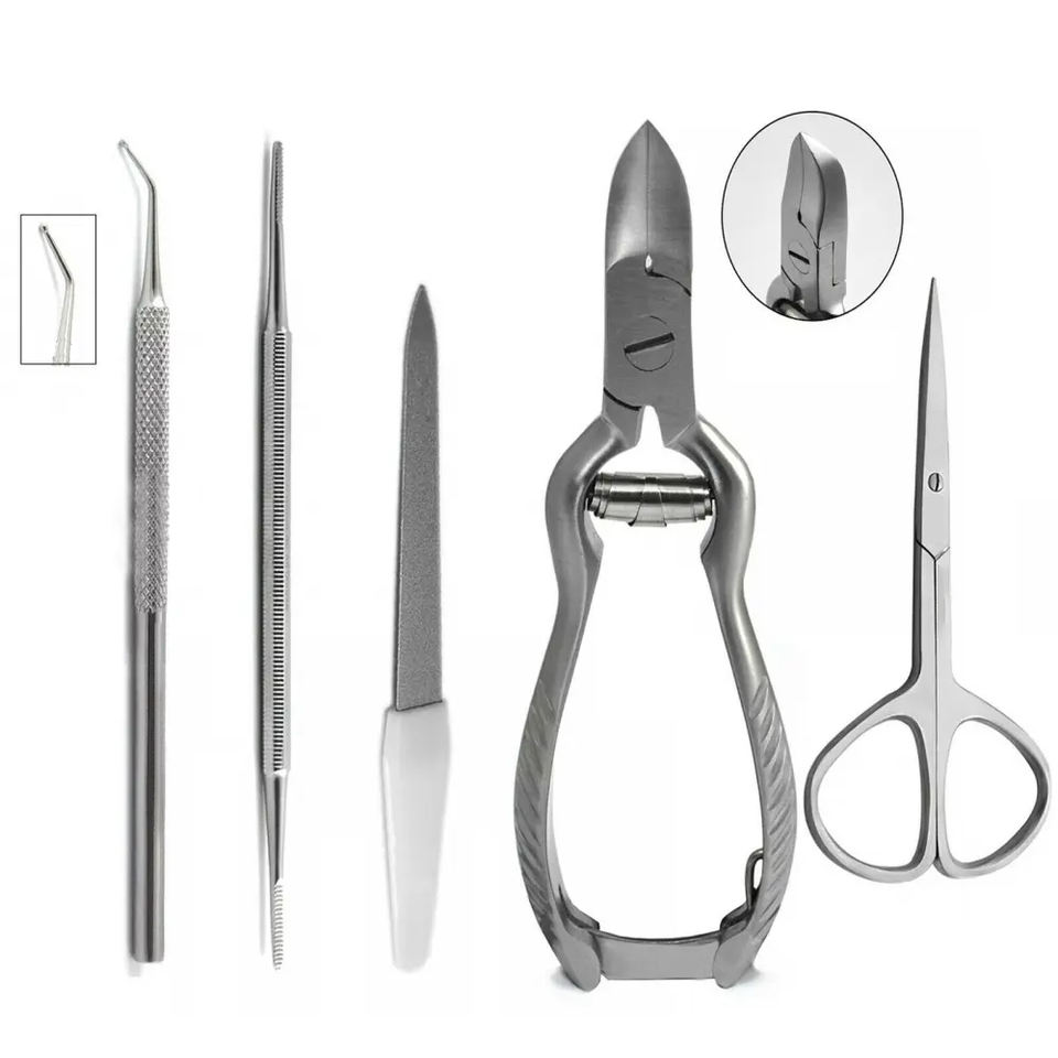 Kit d'outils de podologie et de soins des pieds en acier inoxydable pour ongles épais, comprenant coupe-ongles, sonde, ciseaux courbés et limes à ongles