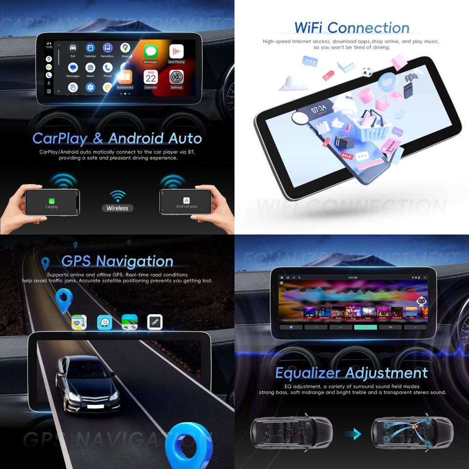 GPS, Stéréo, SANS MAINS, Amplificateur, CarPlay, Android auto, Écran partagé, Gestionnaire de fichiers, Volant de voiture de ContrôleFonction