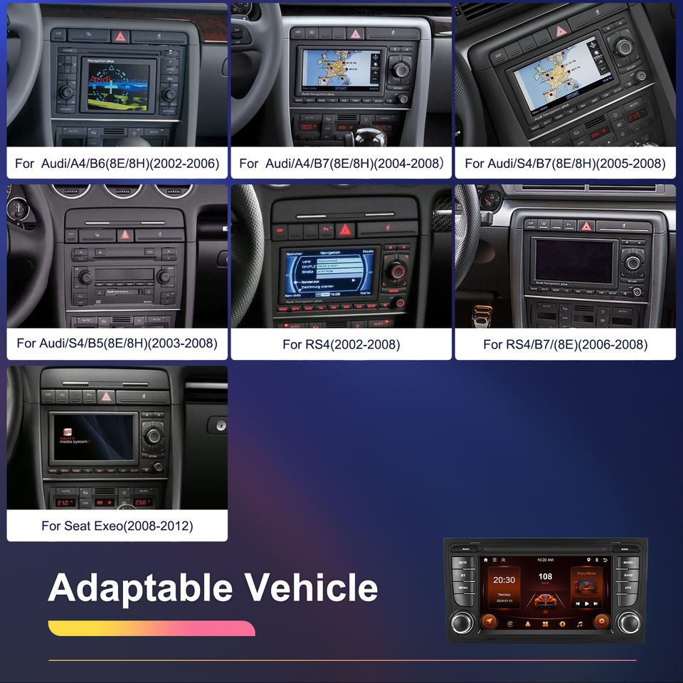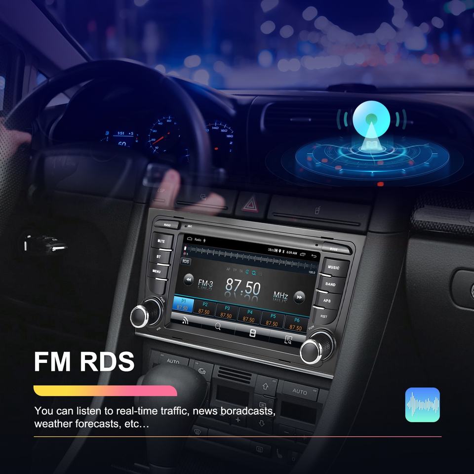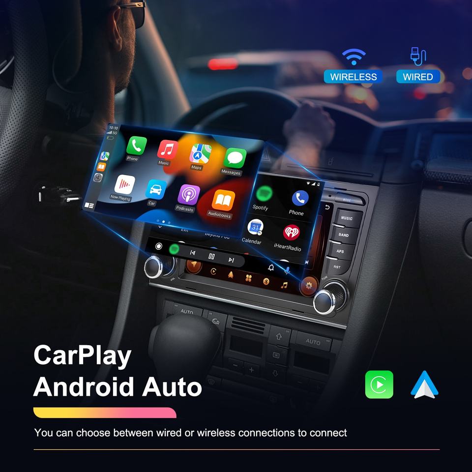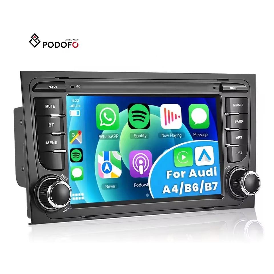 Autoradio Android Podofo 2+64G 7'' avec CarPlay/Android Auto/GPS/WiFi/RDS/Radio réseau pour Audi A4/B6/B7/RS4 pour Seat Exeo