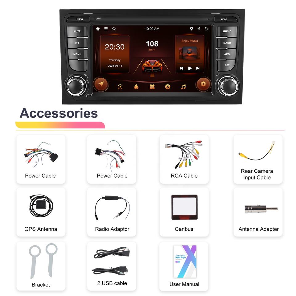 Nom du produit:Autoradio Android CarPlay 7 pouces pour Audi