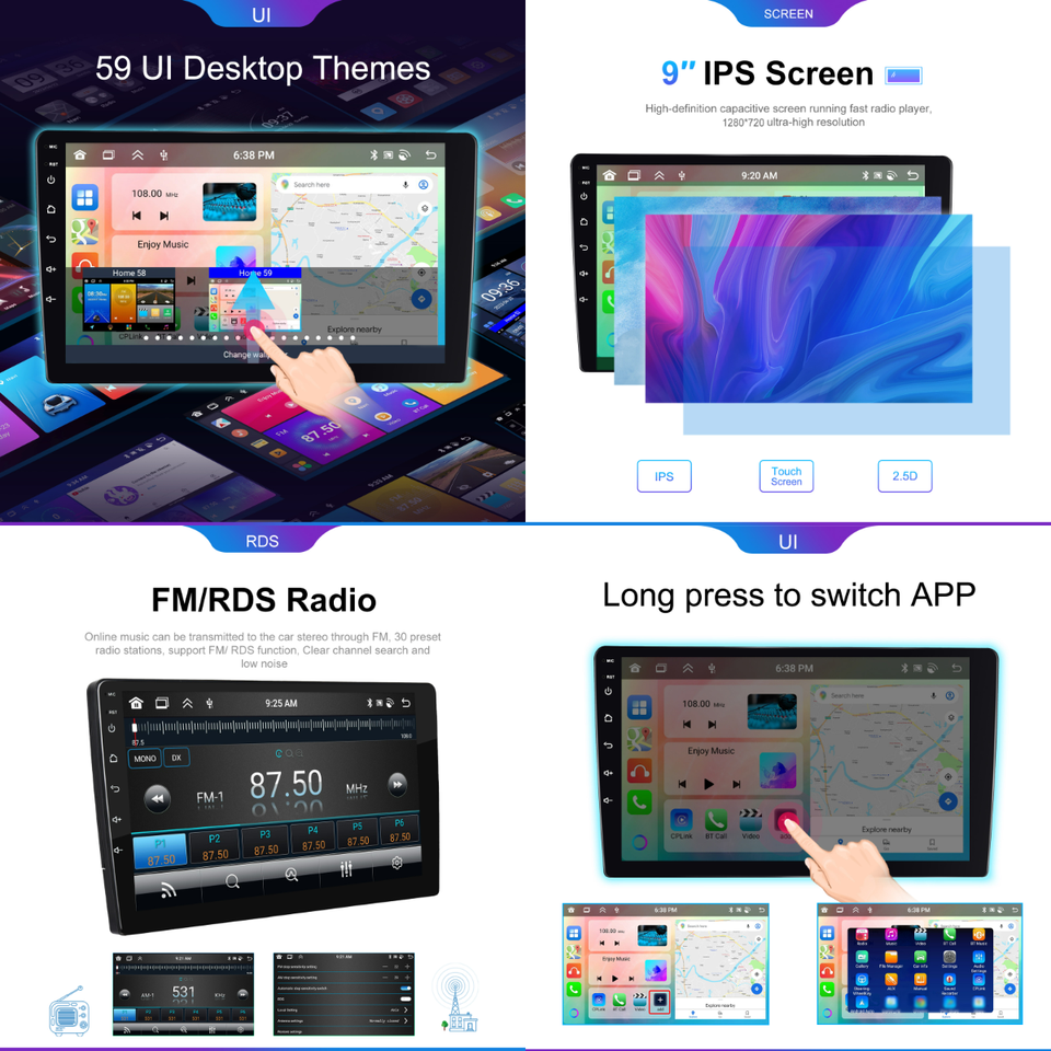 Autoradio Android 9" 6+128G avec Carplay et Android Auto