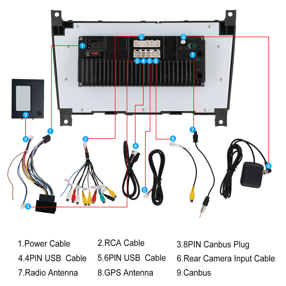 Autoradio Android Podofo 4+64G 7'' pour Mercedes-Benz Classe CLC/Classe C W203, CarPlay/Android Auto sans fil, GPS, WiFi, vente en gros