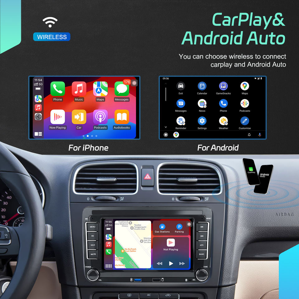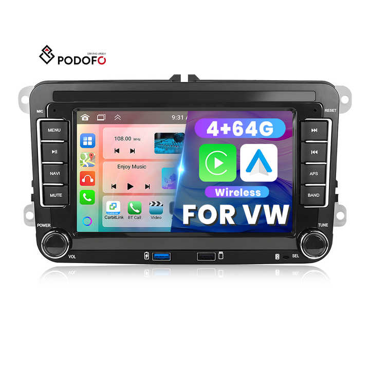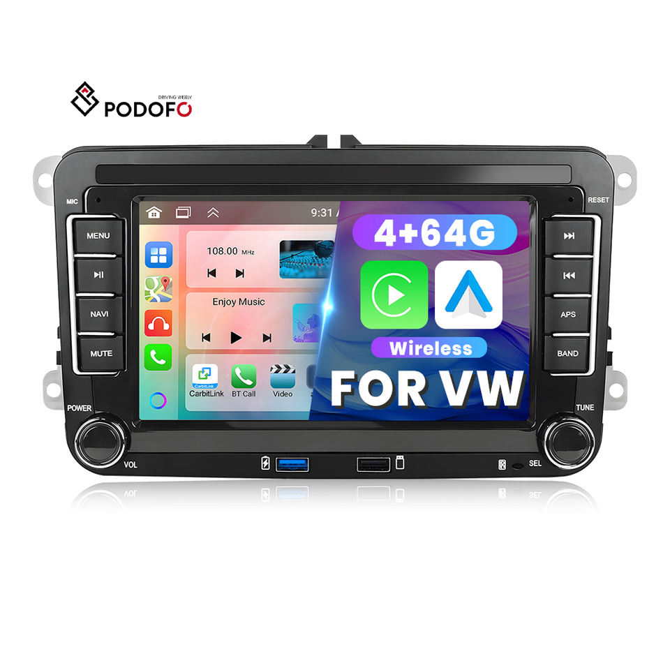 Podofo 4 + 64GB 7 ''Android Autoradio sans fil Carplay & Android Auto GPS WiFi BT FM RDS pour VW/PASSAT/SKODA/POLO/FABIA/GOLF 5/6