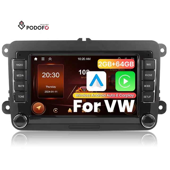 Podofo 7 ''Android autoradio sans fil CarPlay/Android Auto électronique GPS WIFI FM RDS pour VW/PASSAT/SKODA/POLO/FABIA/GOLF 5/6