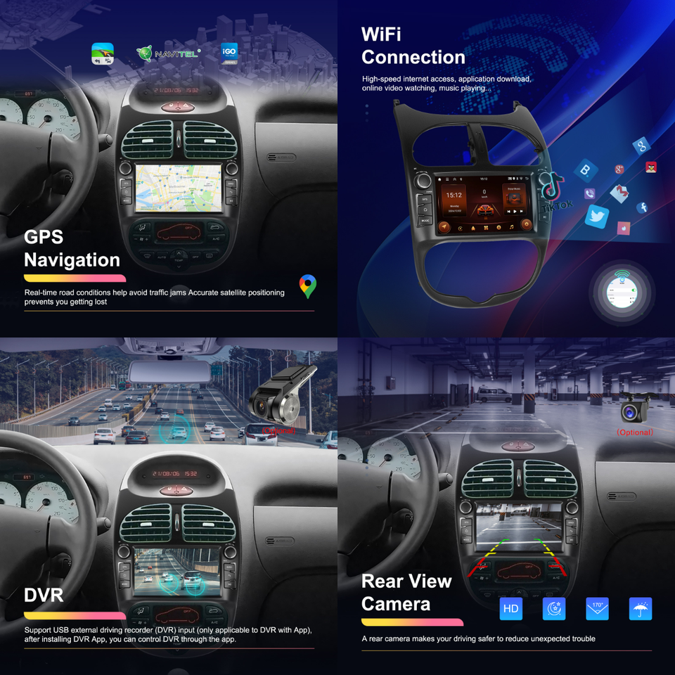Combinaison:Gps intégré, Lecteurs MP3 / MP4, Écran tactile, Transmetteur fm, Caméra de recul, Aide à l'inversion