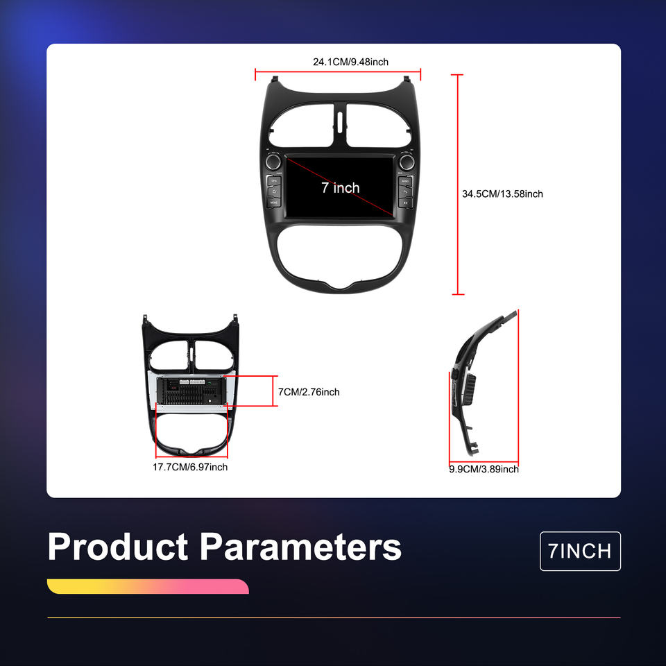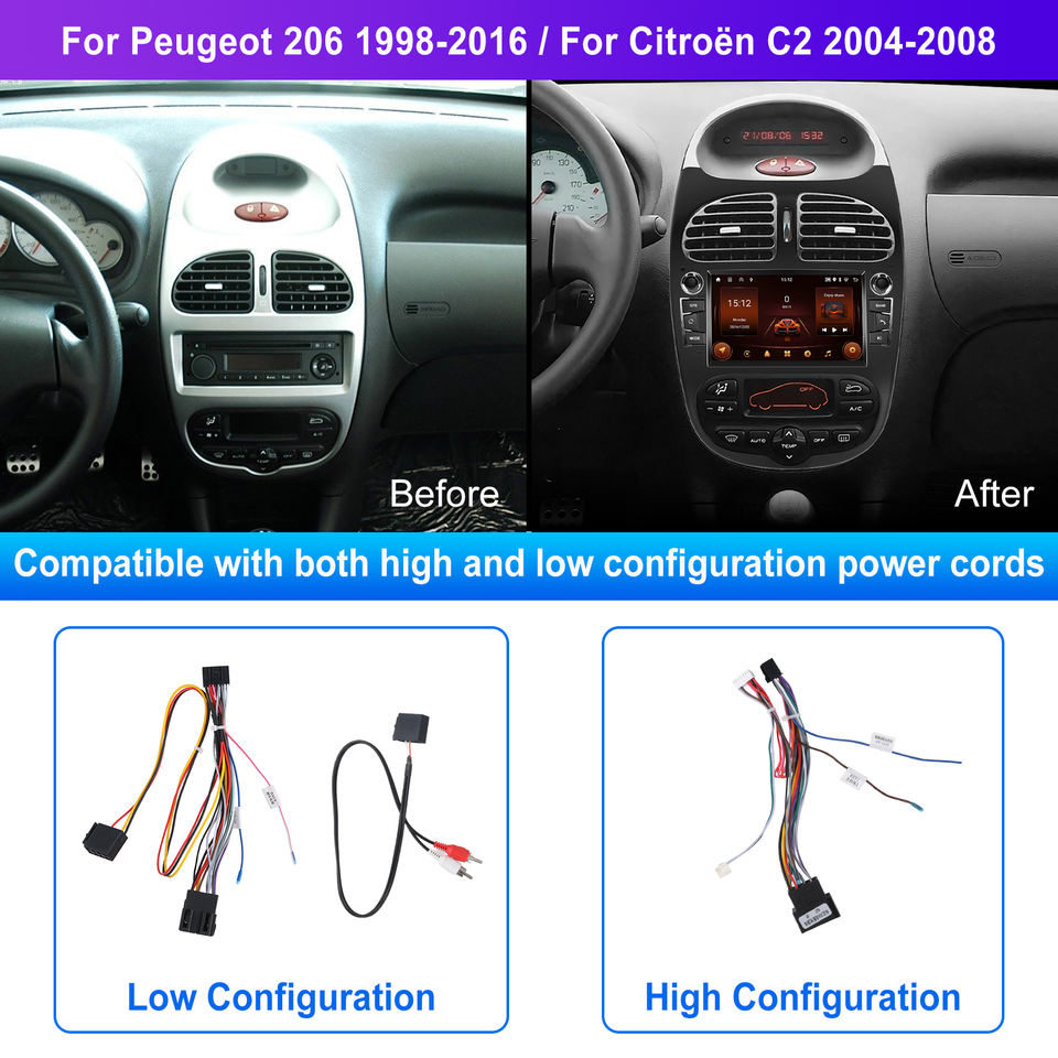Nom du produit:Autoradio Android 7 pouces pour Peugeot 206 / Citroën C2 2004-2008