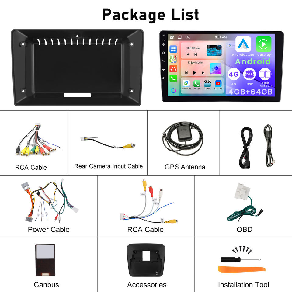 GPS, Stéréo, SANS MAINS, Télécommande, Amplificateur, DSP, CarPlay, DVB +, Lien de miroir, Android auto, Microphone intégré, Écran partagé, Gestionnaire de fichiers, Volant de voiture de ContrôleFonction