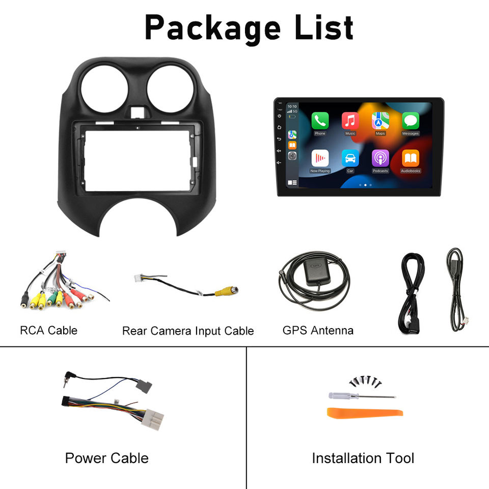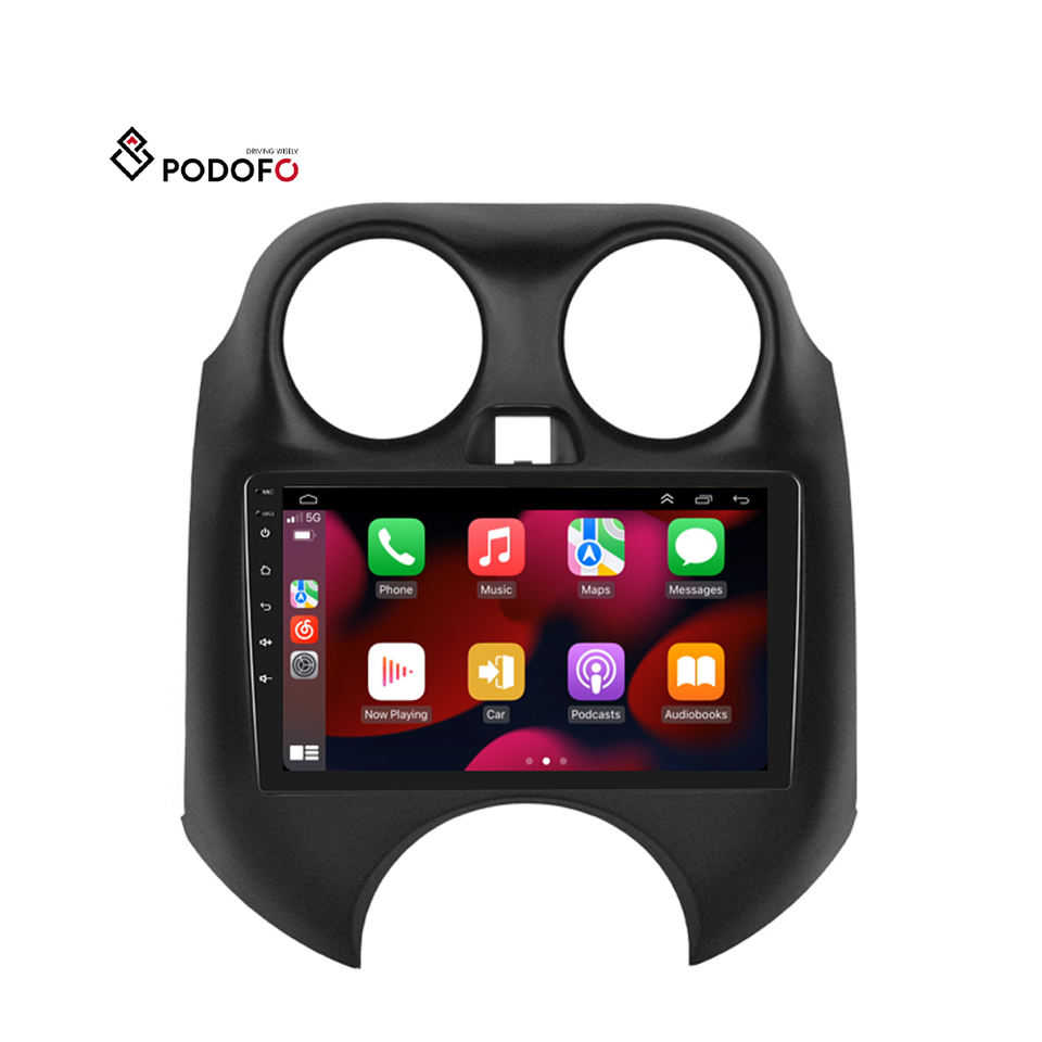 Autoradio Android Podofo 9'' avec CarPlay sans fil et Android Auto pour Nissan Micra 2010-2017, GPS, RDS, HIFI, prise en charge de la caméra AHD, audio