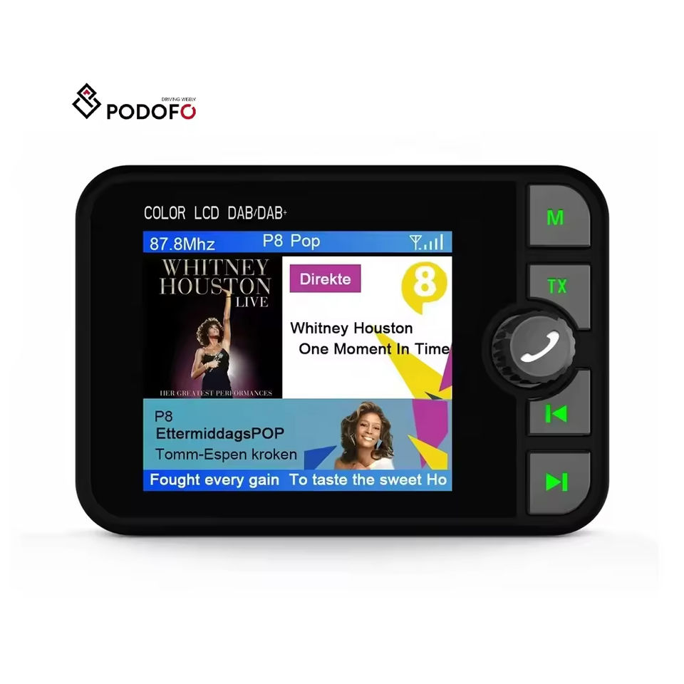 Adaptateur radio numérique DAB Podofo pour autoradio, écran LCD 2,4 pouces, émetteur FM, kit mains libres BT, interface AUX