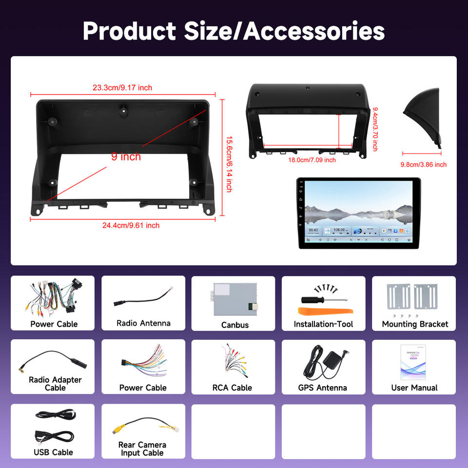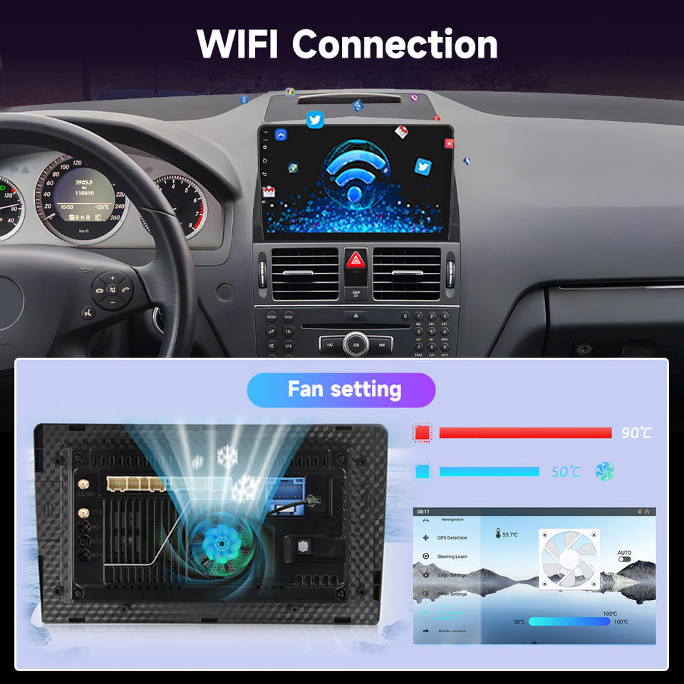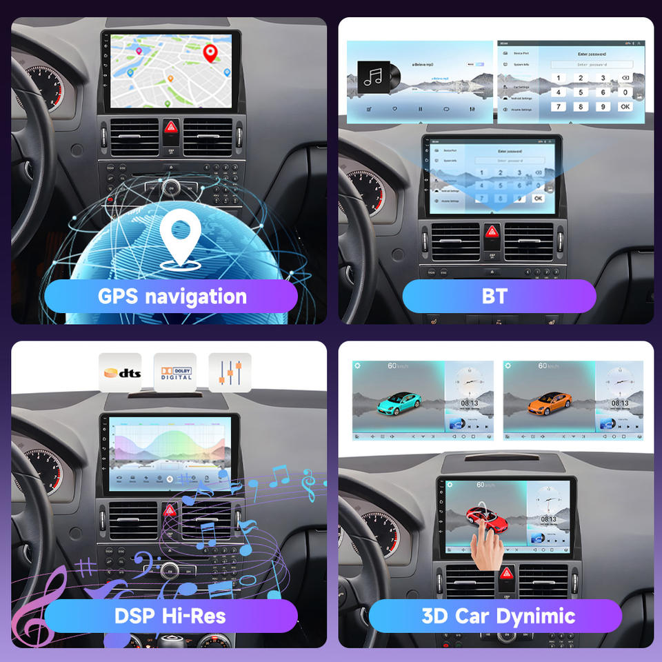 Autoradio Podofo Qualcomm 8 cœurs 9'' 4+64G pour Mercedes-Benz Classe C W204/S204 2007-2014 CarPlay/Android Auto sans fil WiFi 4G
