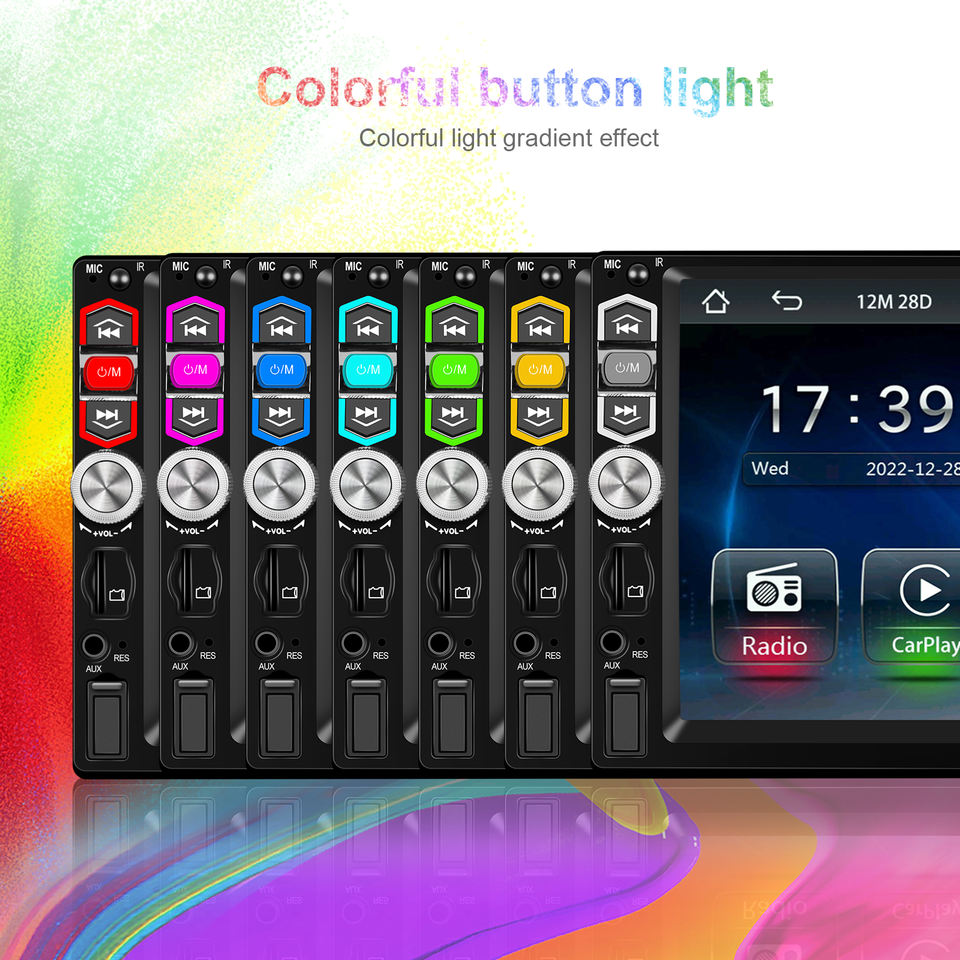 Lecteur MP5 pour voiture Podofo Single Din 7'' avec Carplay sans fil, Android Auto, écran tactile, électronique automobile 7039B, USB, BT, FM avec microphone