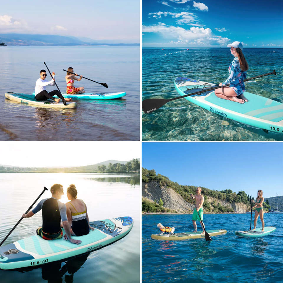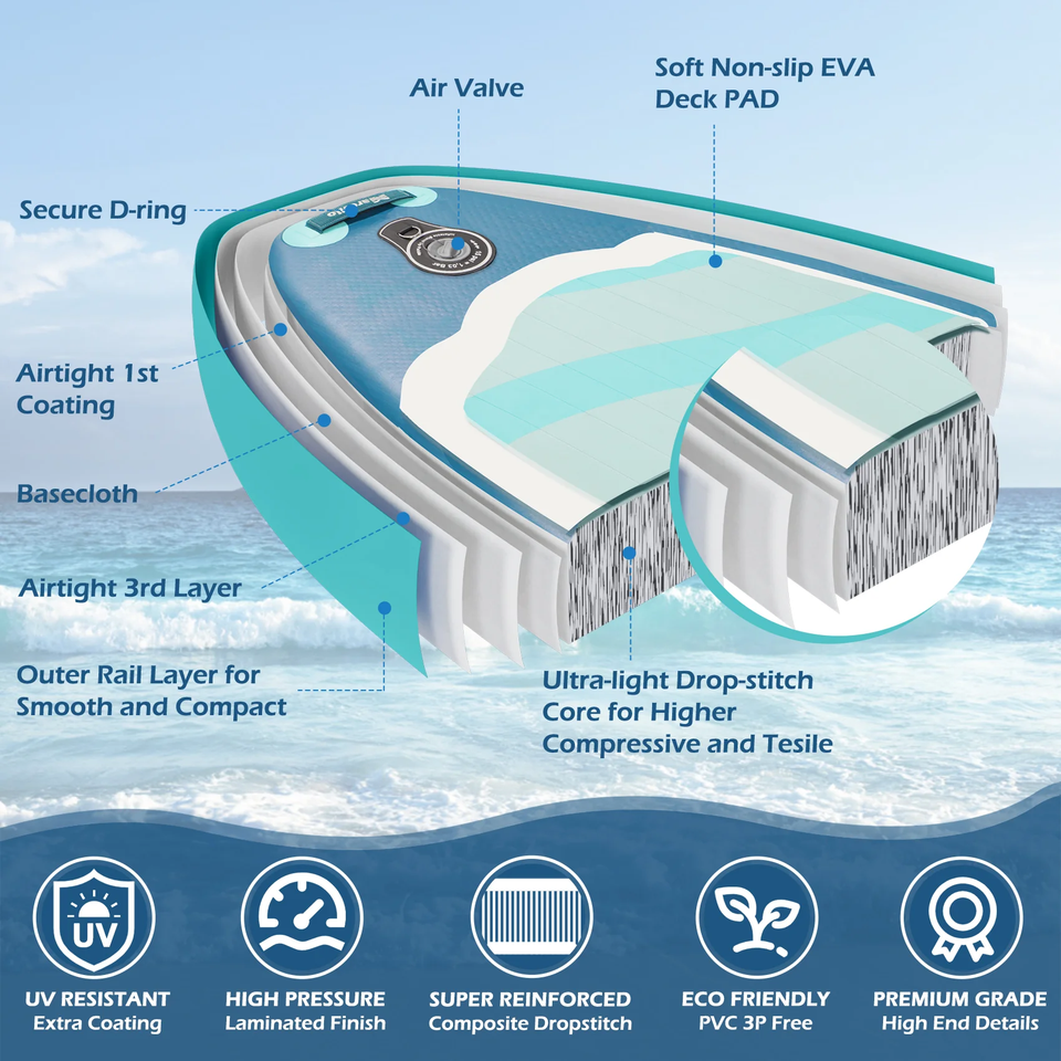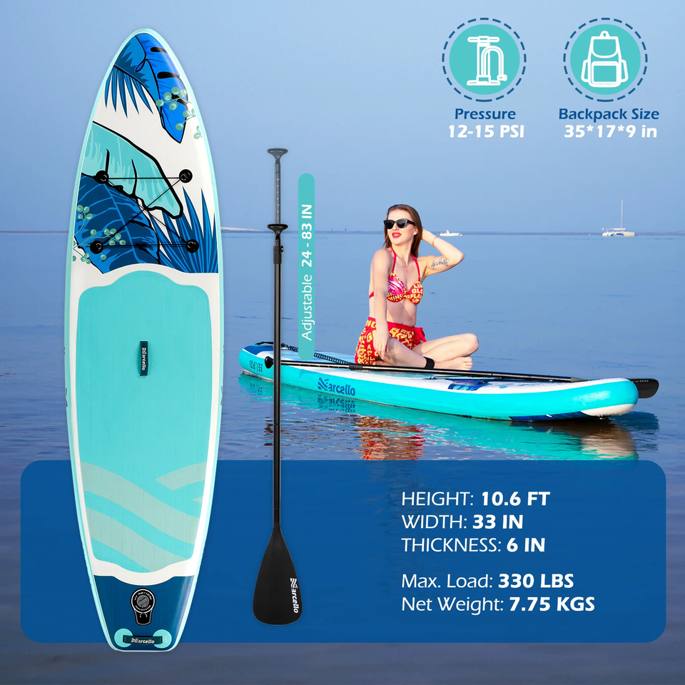 Planche de SUP gonflable tout-terrain PoeticExist en PVC portable, ultra-légère, 10,6'x33', capacité de 330 lb, 3 ailerons complets