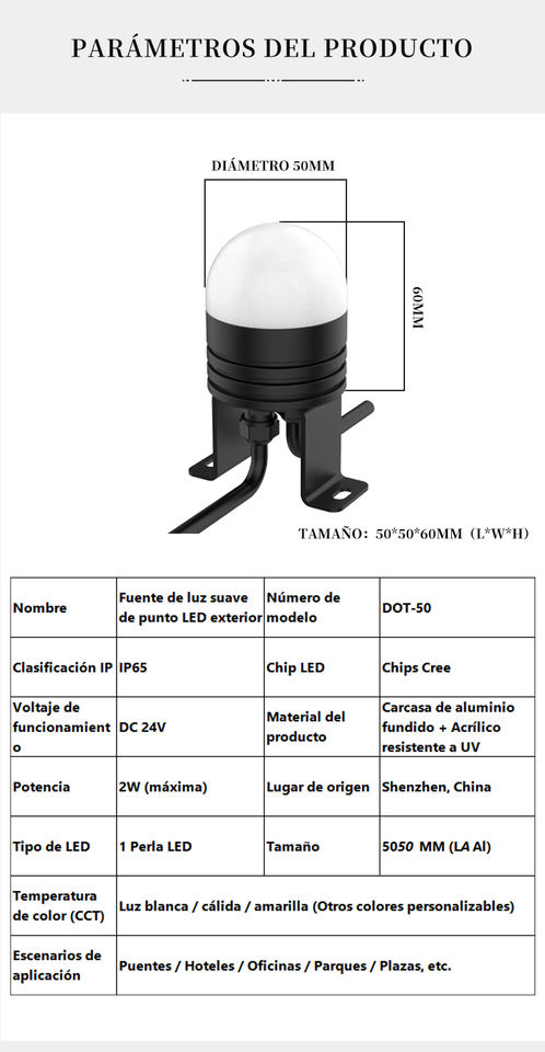 Lampe à source ponctuelle 2026 Overseasdesign Dot-50 200Lm IP65 CNC Dimmable Économie d'énergie Luminaire de cour OEM&ODM Faible MOQ