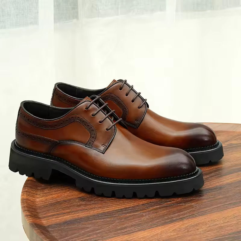 Chaussures en cuir à bout pointu pour hommes, en cuir véritable, chaussures de ville formelles, chaussures de mariage pour le marié, à semelle épaisse, rehaussantes, type Derby