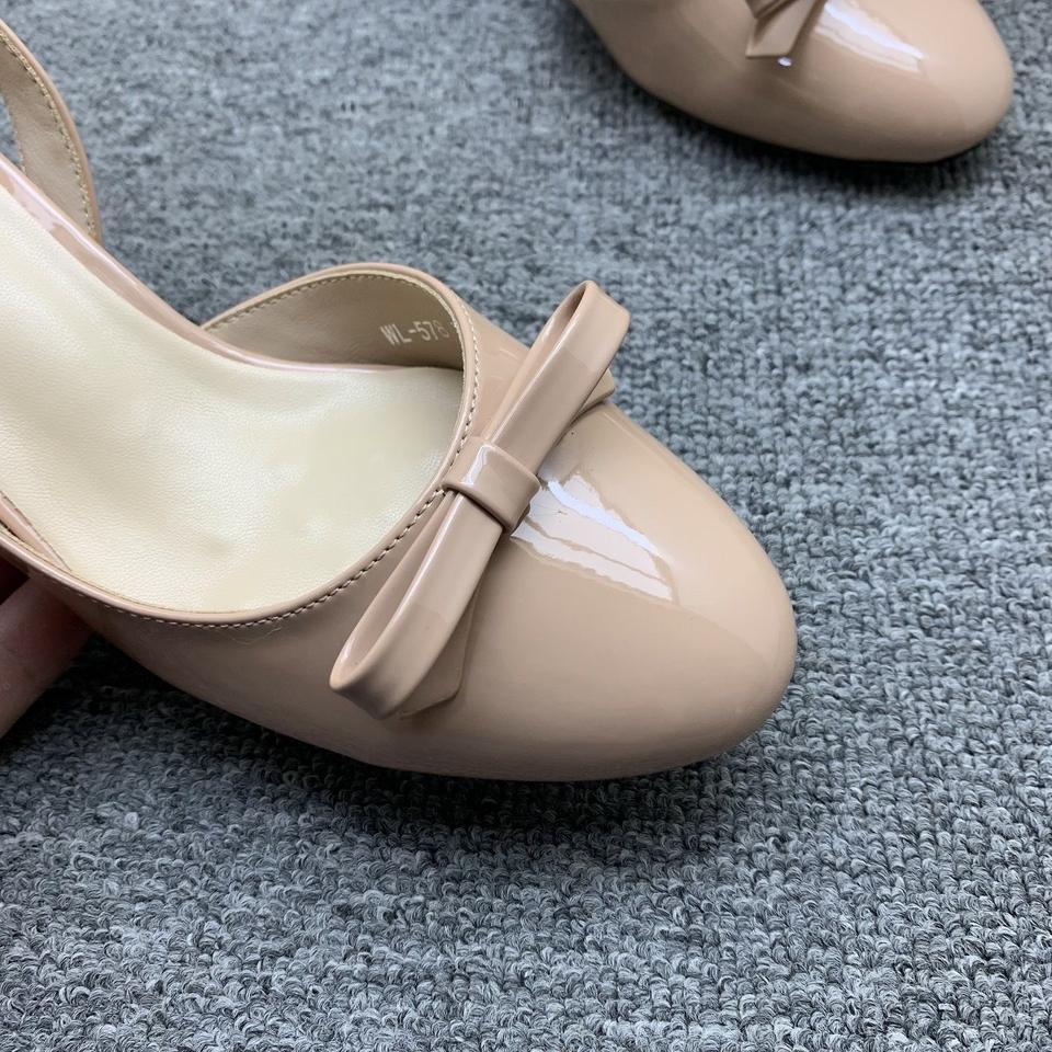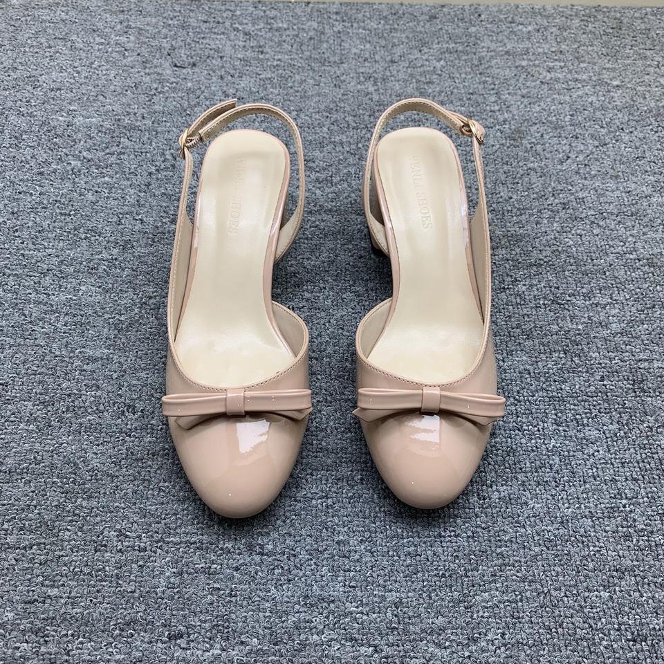 Sandales à bout pointu et talon carré en cuir nude, élégantes, à brides et nœud, talons épais confortables et antidérapants