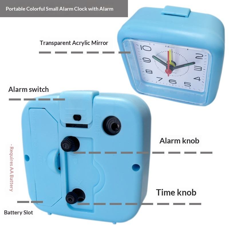 Réveil analogique à affichage par aiguille, mouvement silencieux, veilleuse, miroir, fonction snooze, horloge à quartz pour enfants
