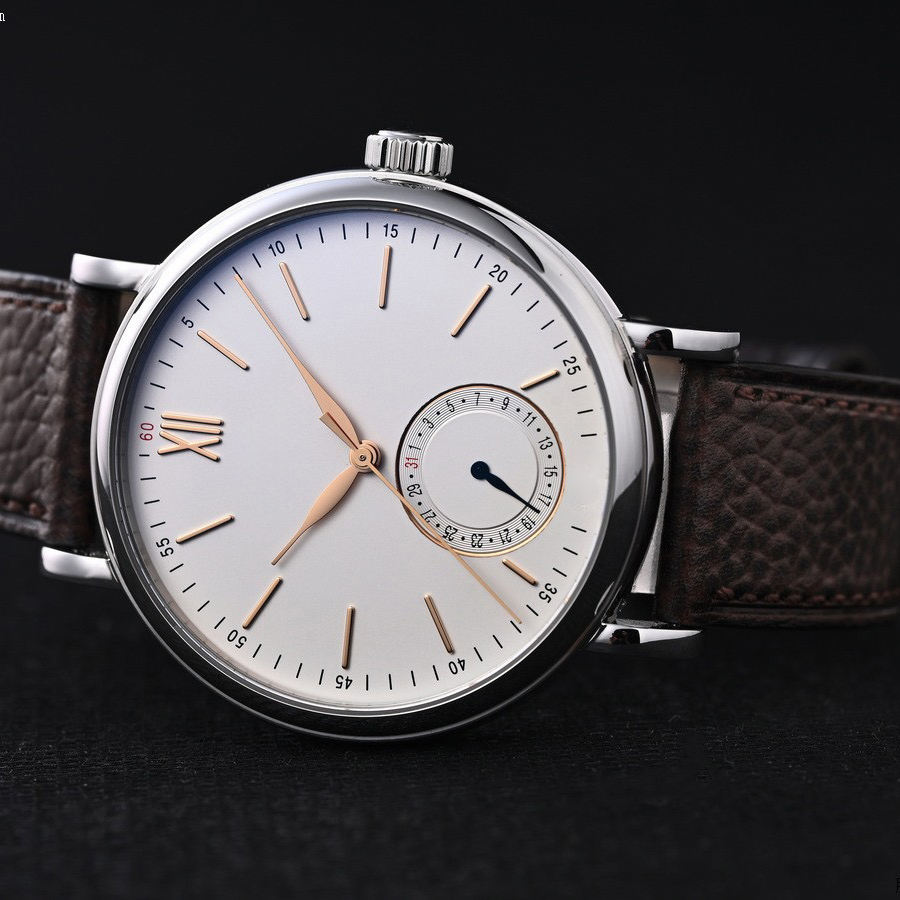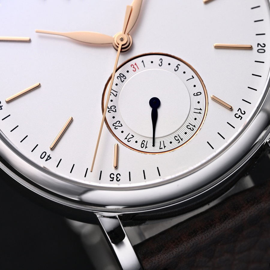 Fonction calendrier de type pointeur, en acier inoxydable, avec verre saphir. Une belle montre formelle pour homme.