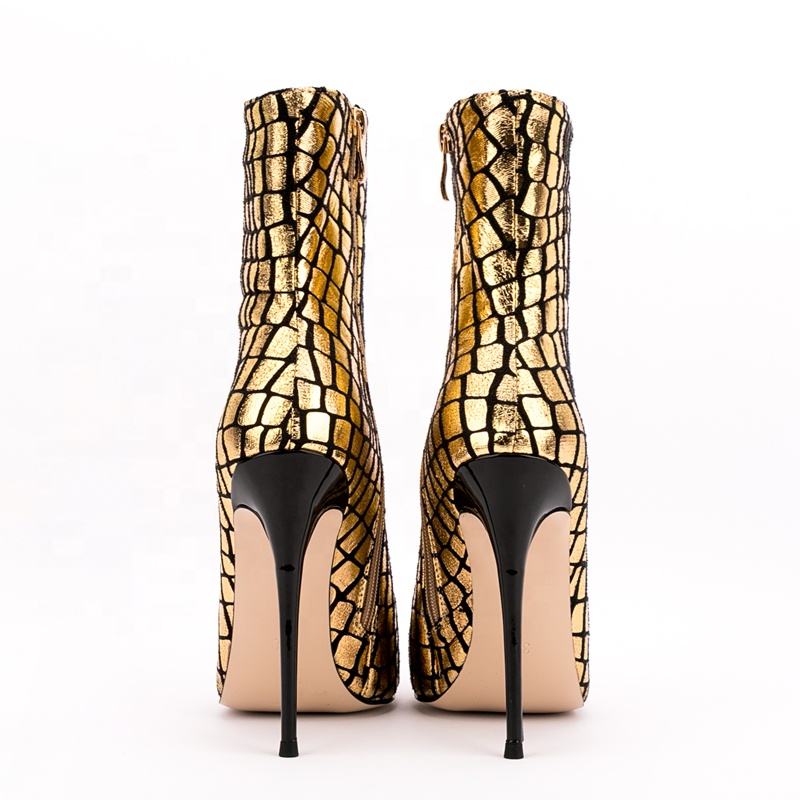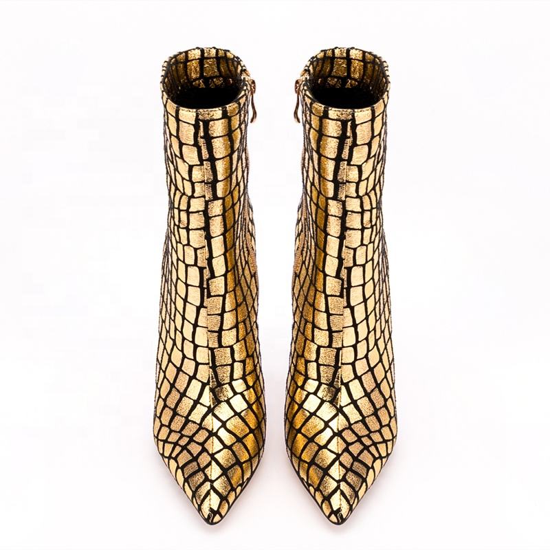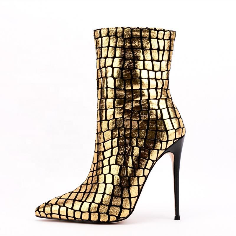 Bottines à talon fin et bout pointu imprimé pierre dorée pour femme, grande taille personnalisée 47, avec fermeture éclair latérale