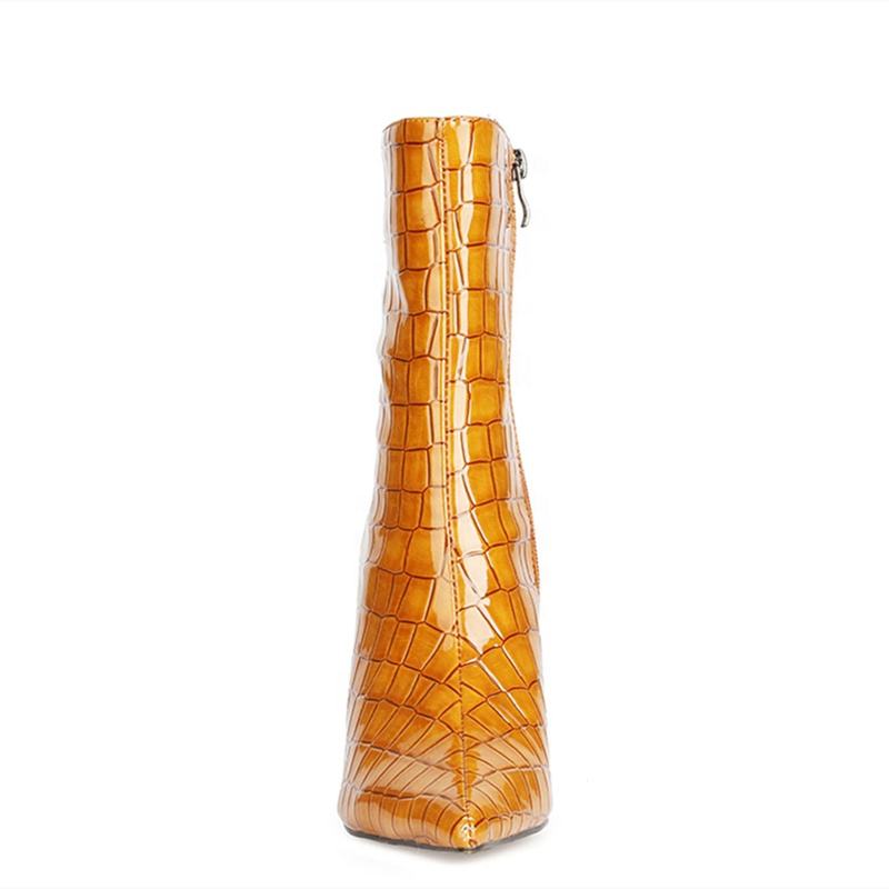 Pointy Toe Stone Print Upper Thick Wedge Heel Ankle Boots Fashion Zipper High Heel Winter Short Boots for Women Big Size 45