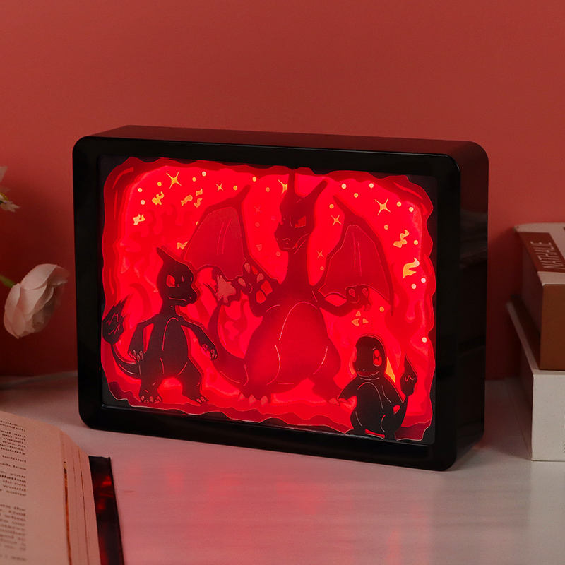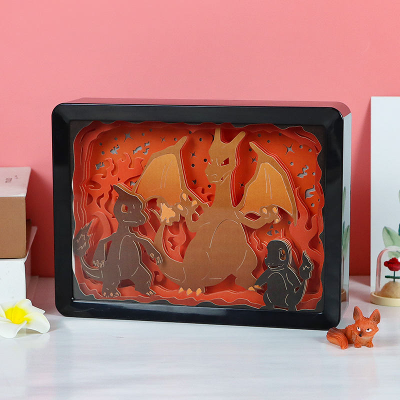 Boîte Lumineuse Animée Pokémon Veilleuse LED Dessin Animé Sculpture sur Papier Dragon Lampe de Chevet pour Chambre d'Enfant Cadeau d'Anniversaire Garçon
