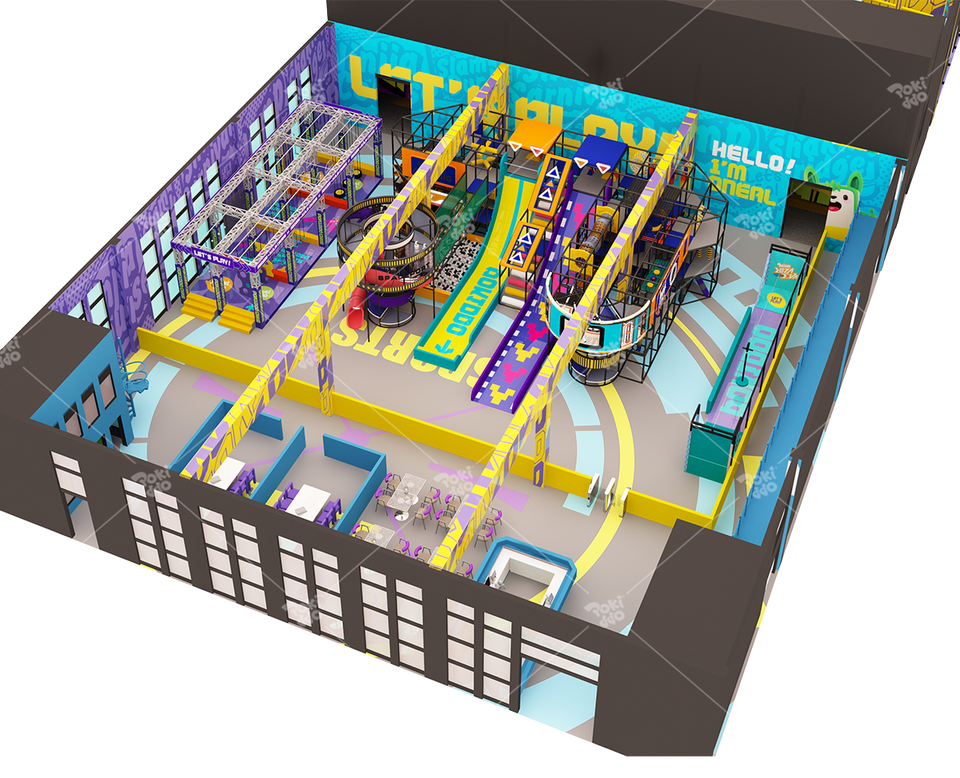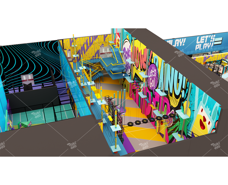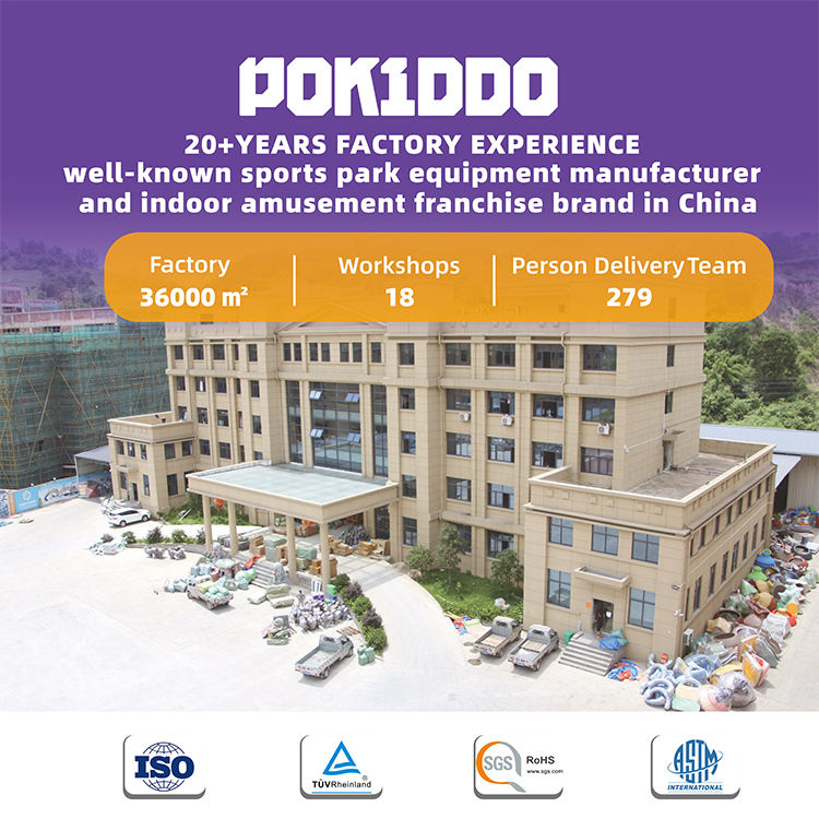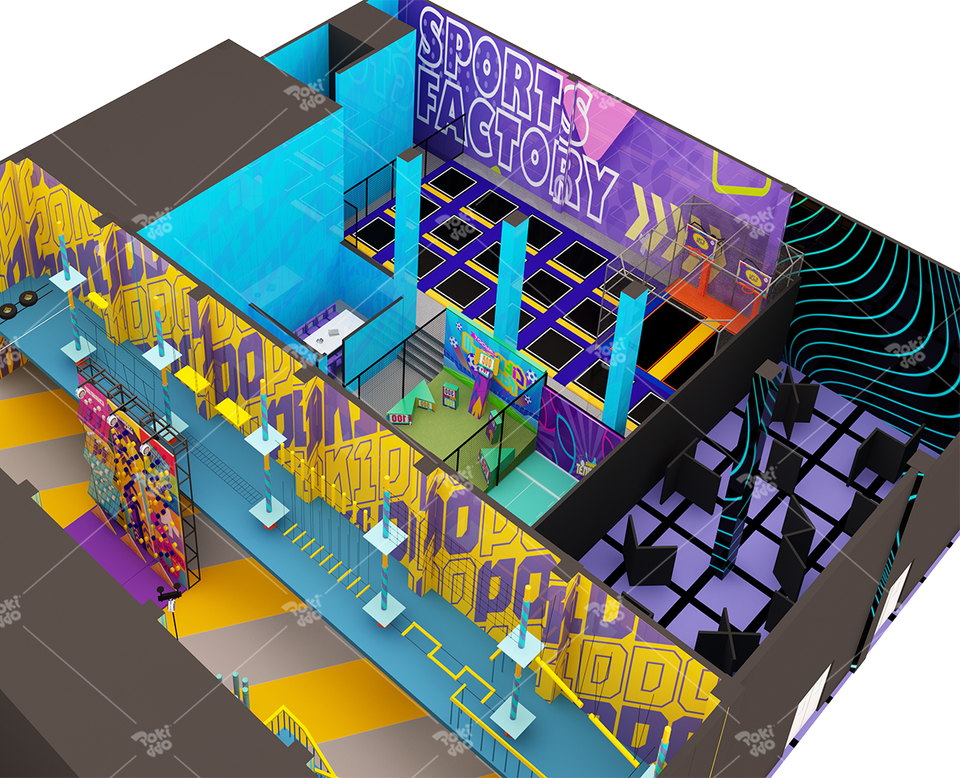 Parc de trampolines en plastique personnalisable Pokiddo de 2000 m², équipement de terrain de jeux intérieur, ensemble complet, service tout-en-un pour centre commercial
