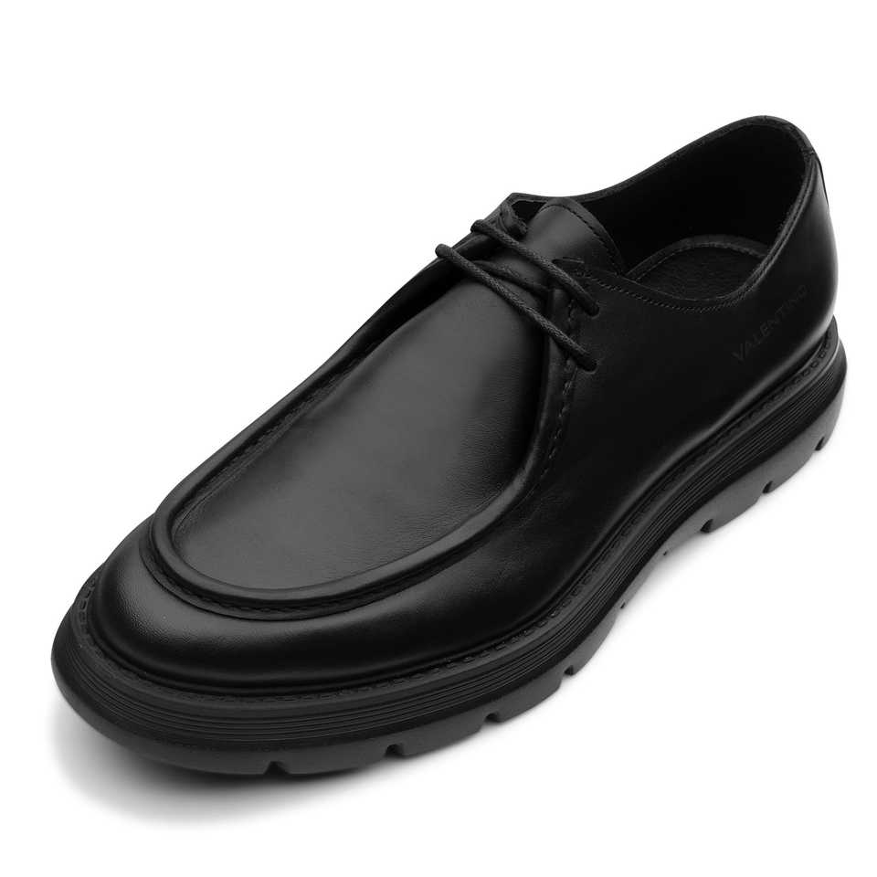 Polacchino Flat Black Italian Calf Leather Logo Tone on Tone Gum Sole Dress Shoes & Oxfords