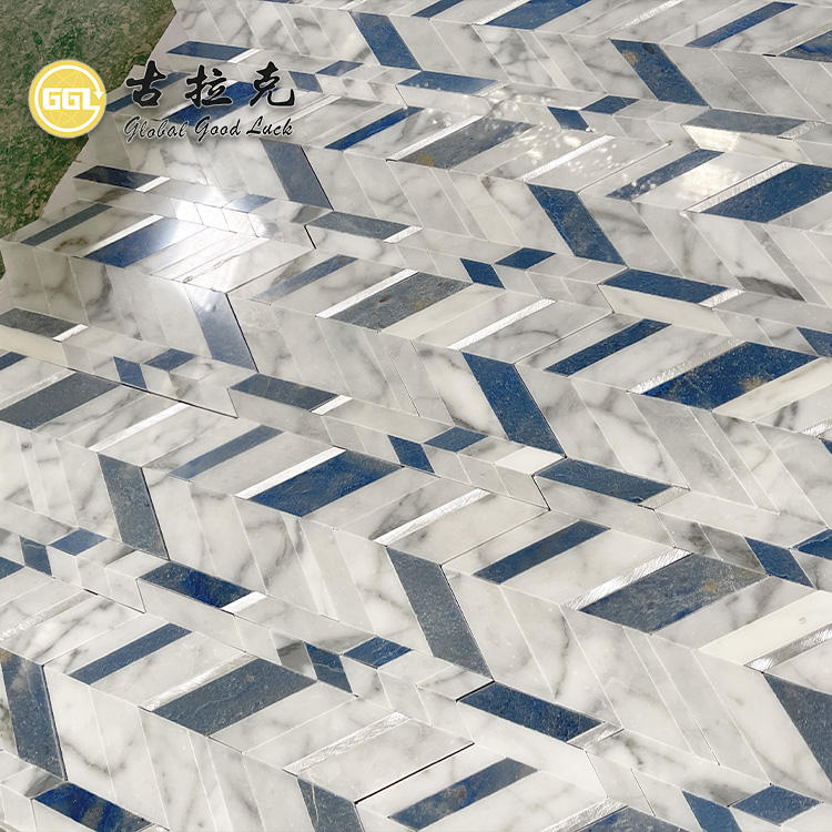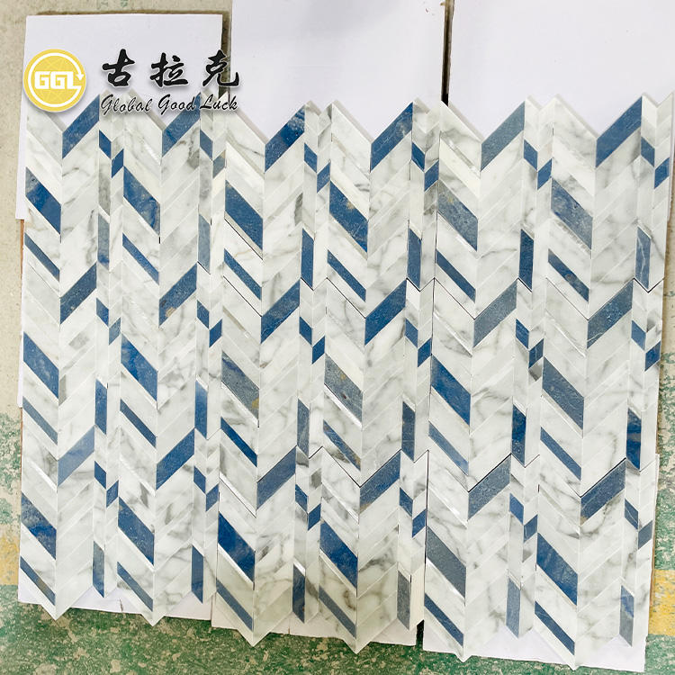 Product Nam:Blue Mix White Marble Chevron Shape Mosaic Tile for Interior Decor
