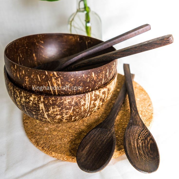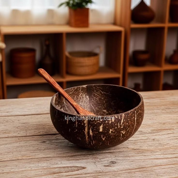 Bol en Coque de Noix de Coco Polie Fait Main Classique Écologique Léger et Durable pour Smoothies Salades Fruits Riz Ustensiles de Cuisine