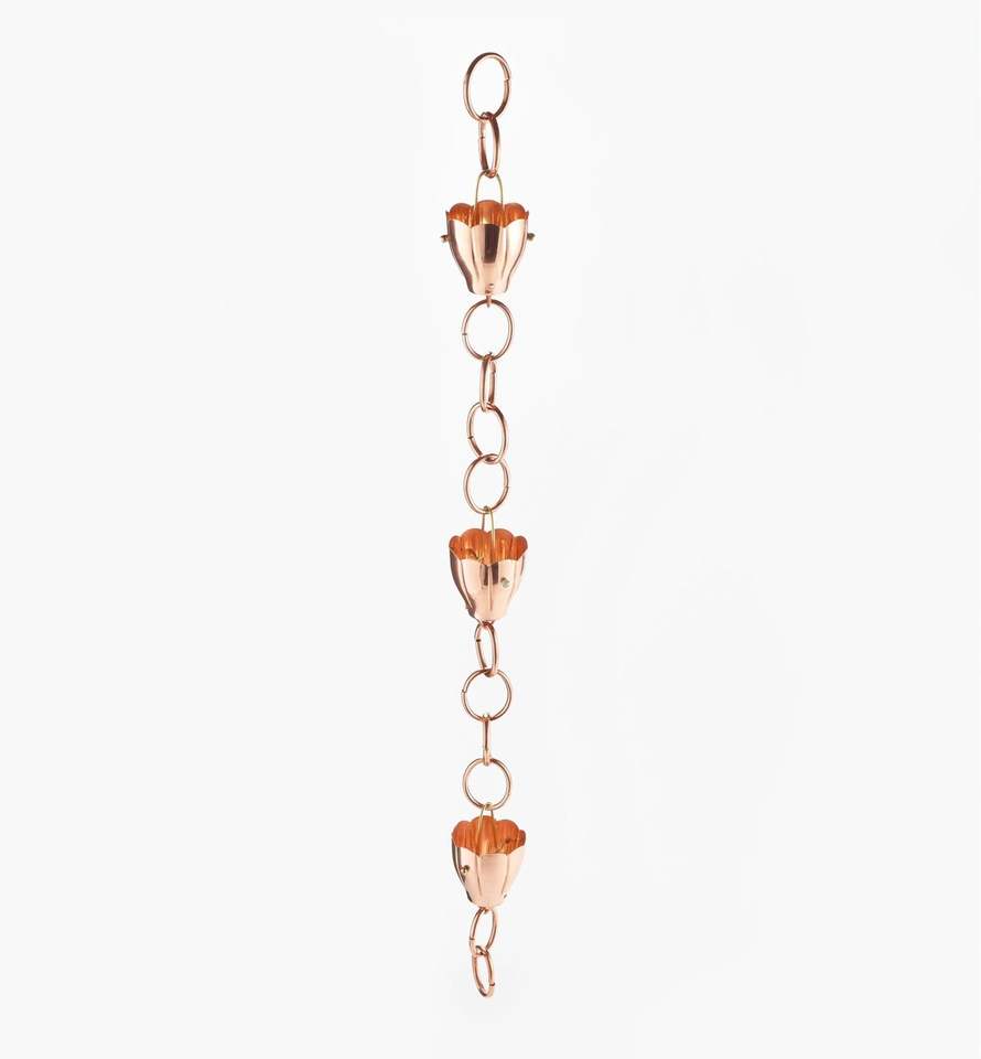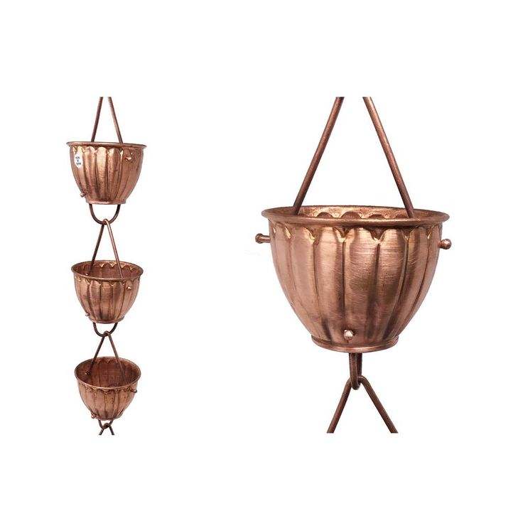 Chaîne de pluie en cuivre poli à nervures, système de récupération d'eau suspendu classique pour toit de jardin