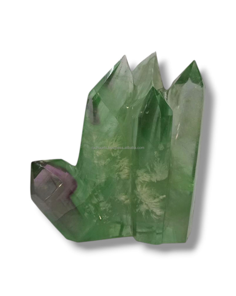 Grappe de fluorite verte polie Pierre brute en cristal naturel multi-points pour l'artisanat en cristal à thème de guérison et d'amour