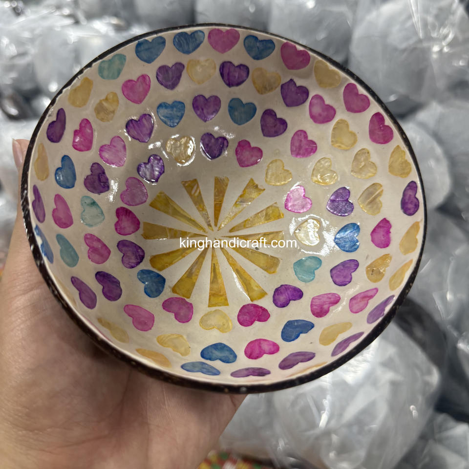 Bol en coquille de noix de coco poli fait à la main avec laque colorée | Bol biologique réutilisable pour la nourriture, les cadeaux et l'artisanat