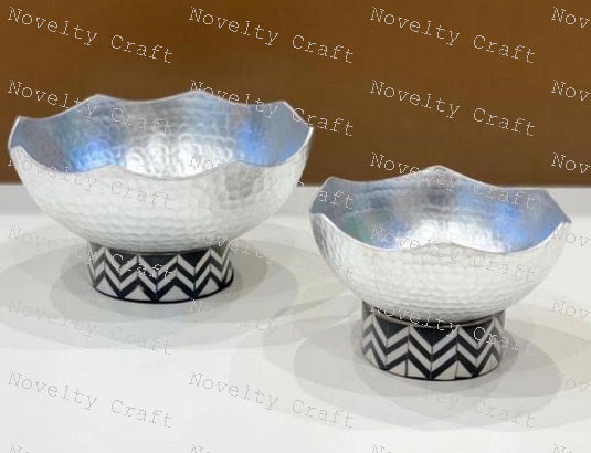 Polished Indian Metal World Chocolate Serving Bowl with Wood Base for Dessert Display and Sweet Durable Party Ware