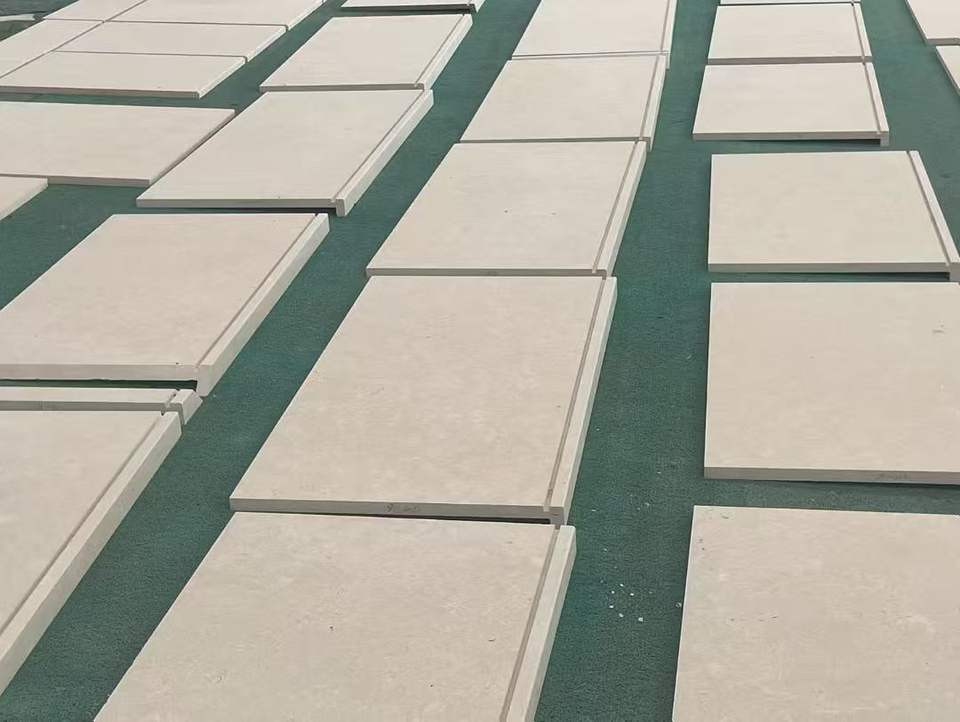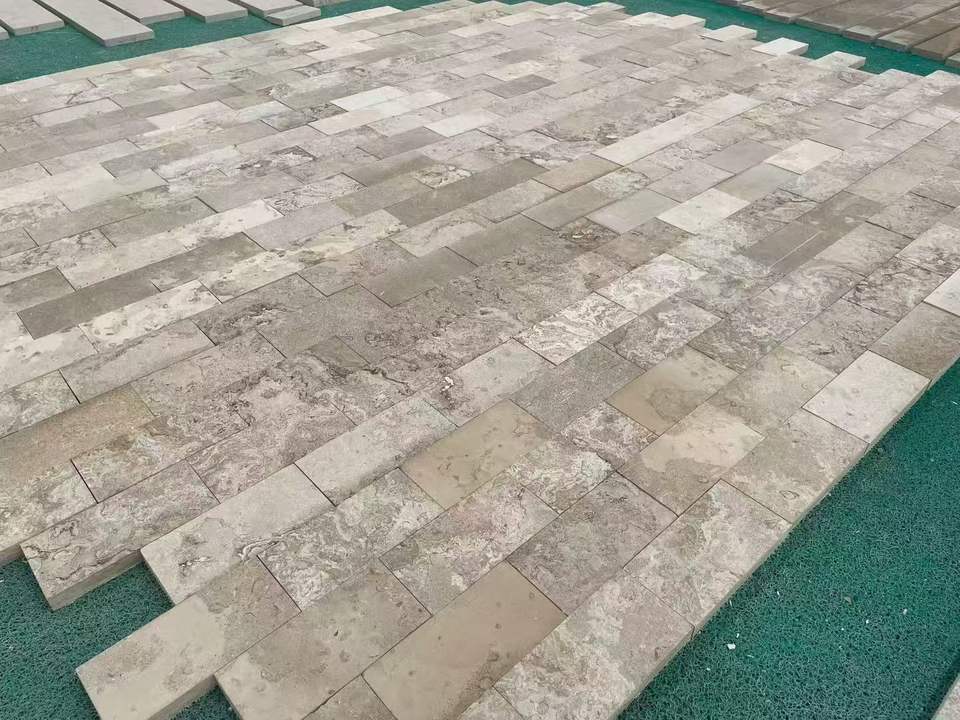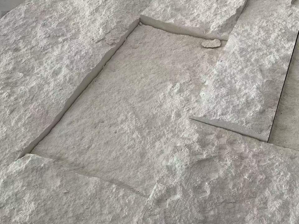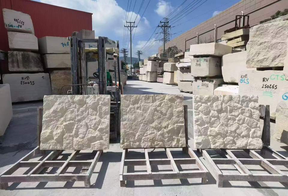 Revêtement mural en pierre naturelle polie, pierre calcaire beige à face brisée, pour usage extérieur dans les projets hôteliers et de villas