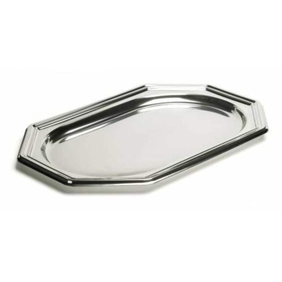 Plateau de service octogonal en acier inoxydable poli argenté, plateau alimentaire en métal durable pour hôtel, restaurant, mariage, fournitures de fête