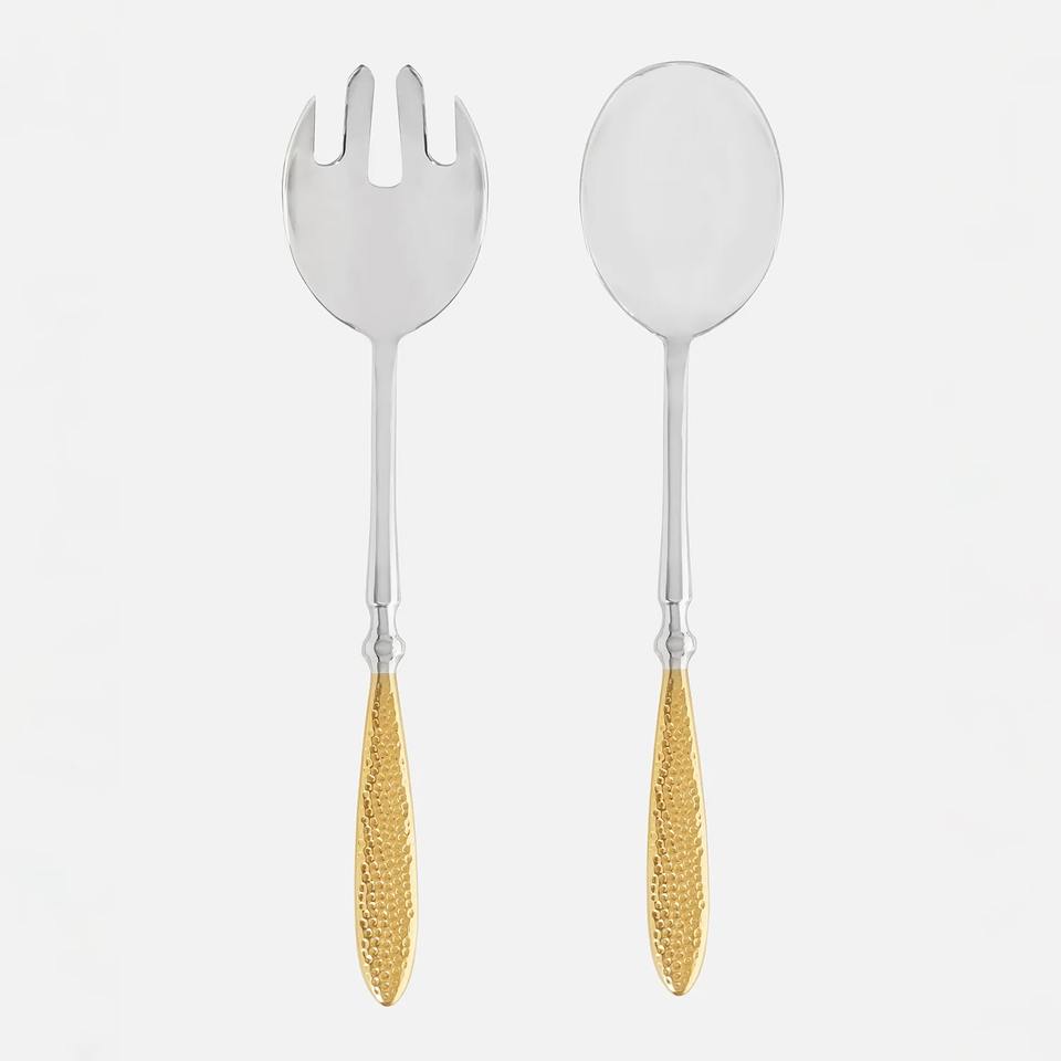 Ensemble de serveurs à salade en acier inoxydable poli, manche design, ensemble de couverts haut de gamme pour cuisine moderne
