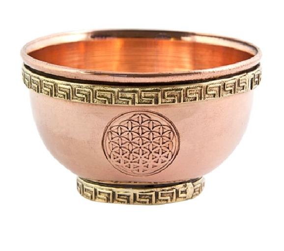 Bol d'offrande en cuivre tibétain poli monté sur un objet religieux de décoration intérieure en laiton avec une statue de Ganesha montée sur pierre