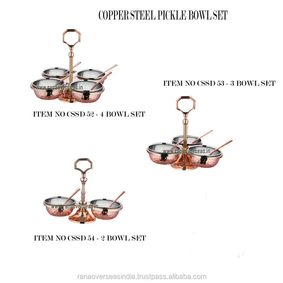 Polished Vintage Steel and Copper 3 Bowl Compartment Pickle Set for Party Restaurant Hotel Home Use