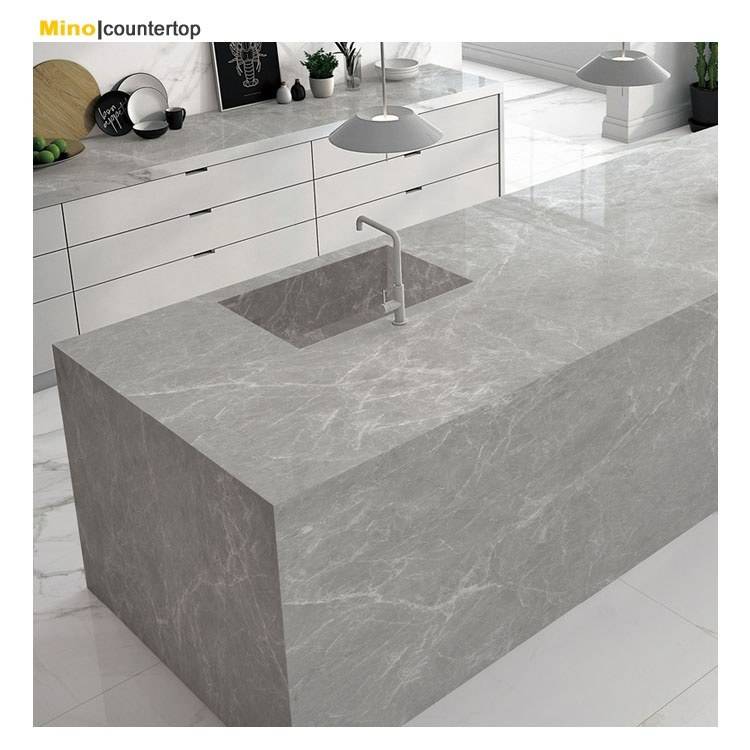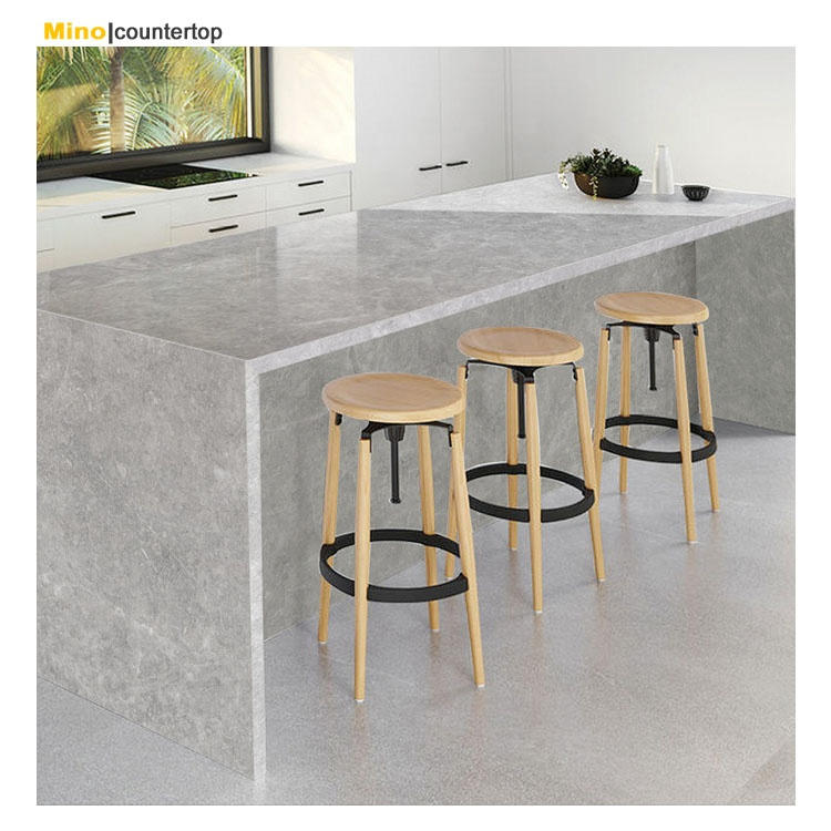 Plans de travail polis Quartz Pas cher Gris Blanc Granit Armoires de cuisine Comptoirs stratifiés de comptoir Brillant